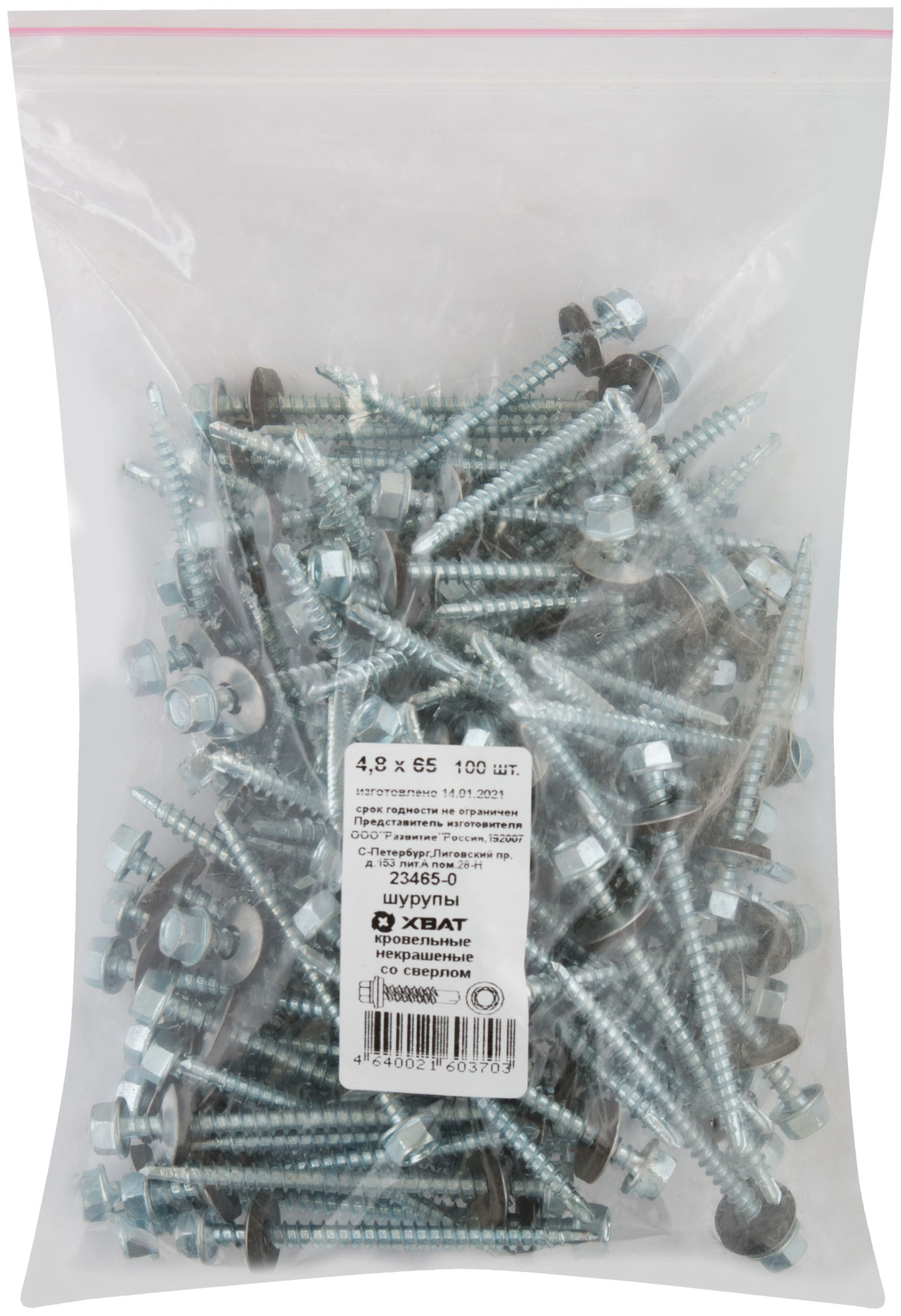 Шурупы кровельные некрашеные, со сверлом 4.8 х 65 100 шт. Фасовка