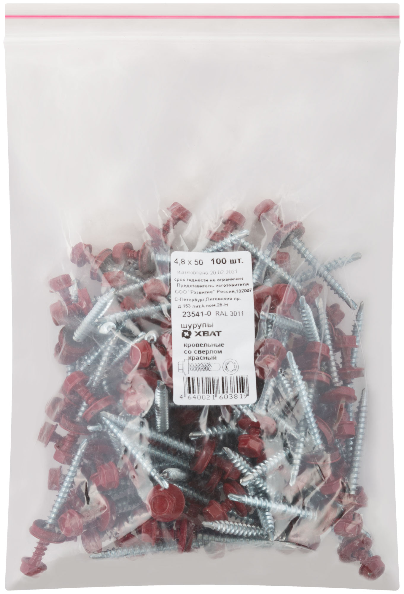 Шурупы кровельные со сверлом 4.8 х 50 RAL 3011 красный 100 шт. Фасовка