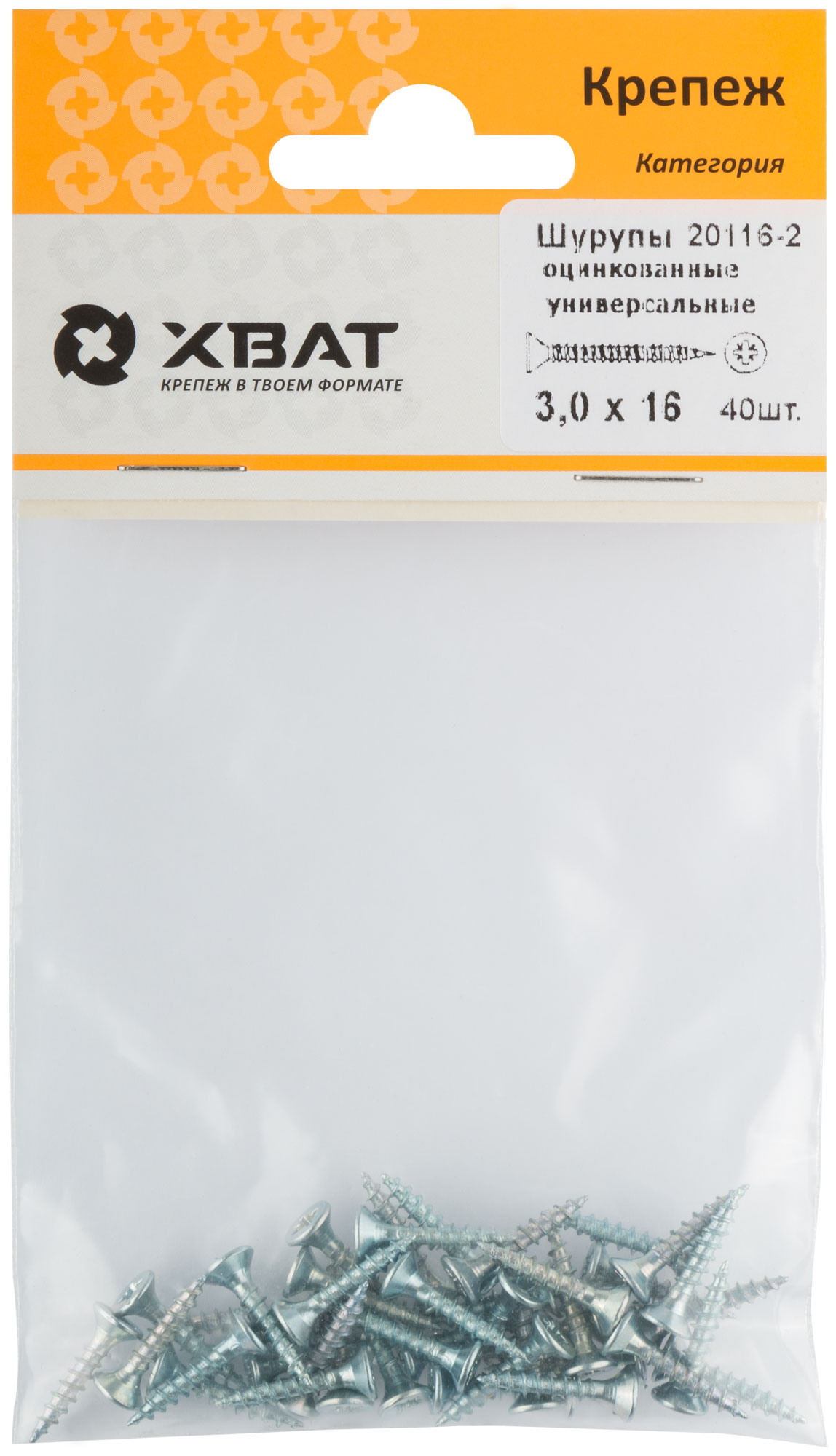 Шурупы оцинкованные, универсальные 3 х 16 (фасовка 40 шт.)