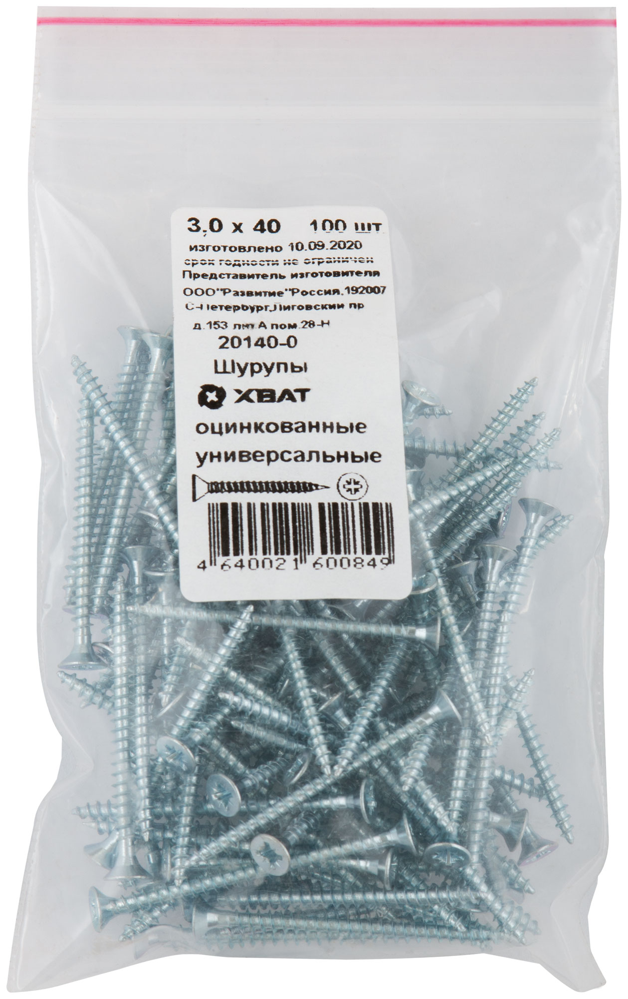 Шурупы оцинкованные, универсальные 3 х 40 100 шт Фасовка