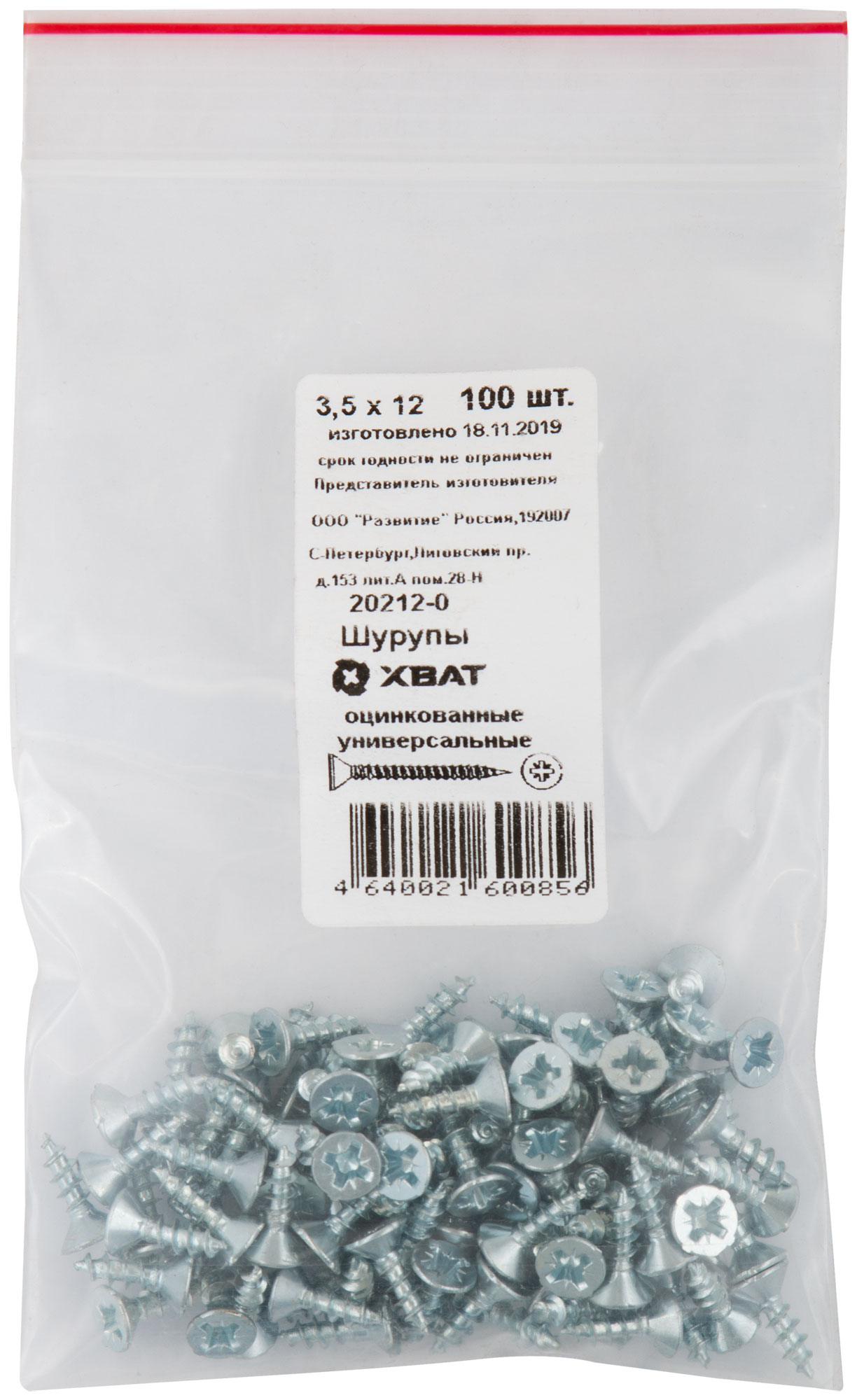 Шурупы оцинкованные, универсальные 3,5 х 12 100 шт Фасовка