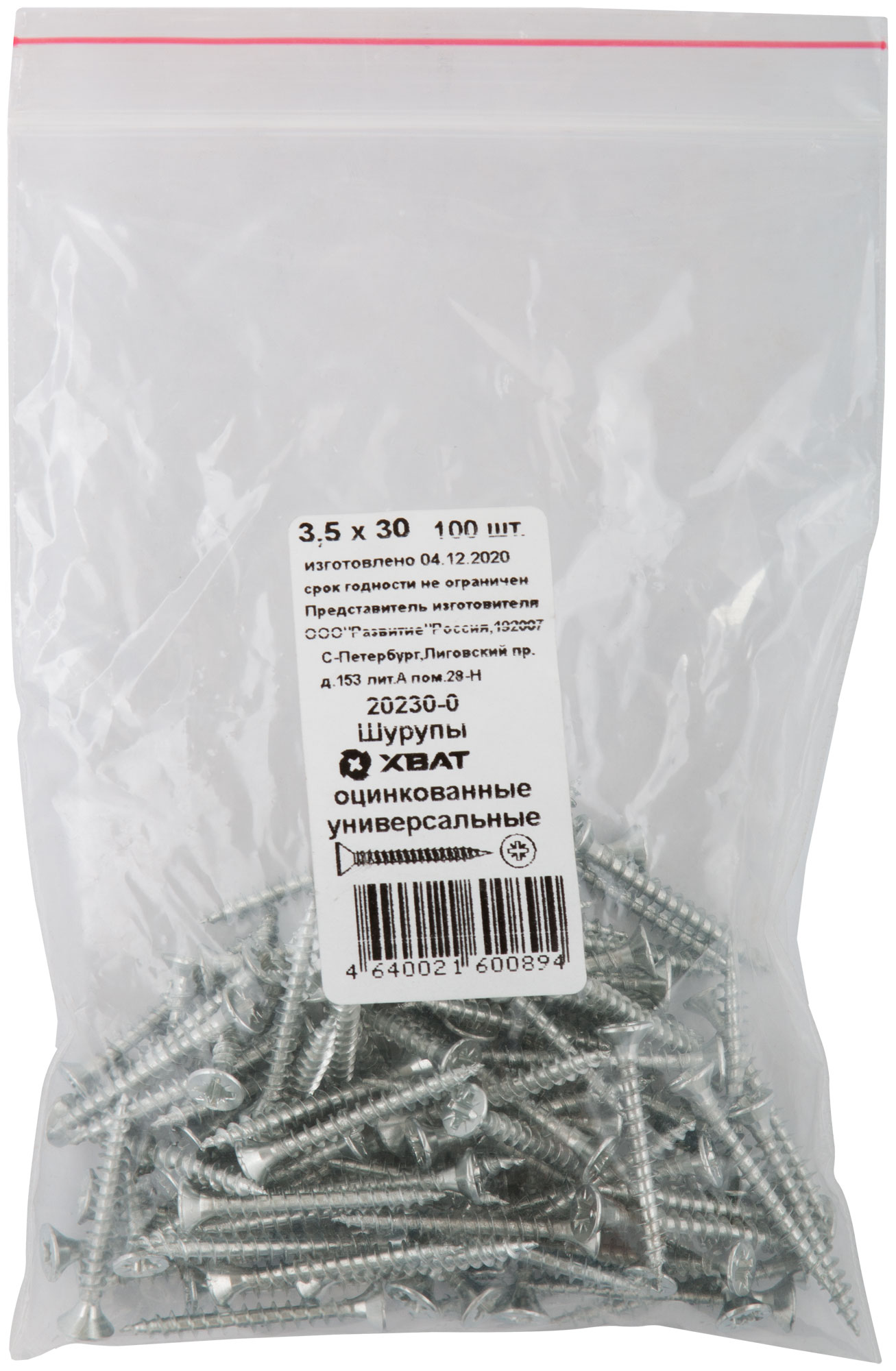 Шурупы оцинкованные, универсальные 3,5 х 30 100 шт Фасовка