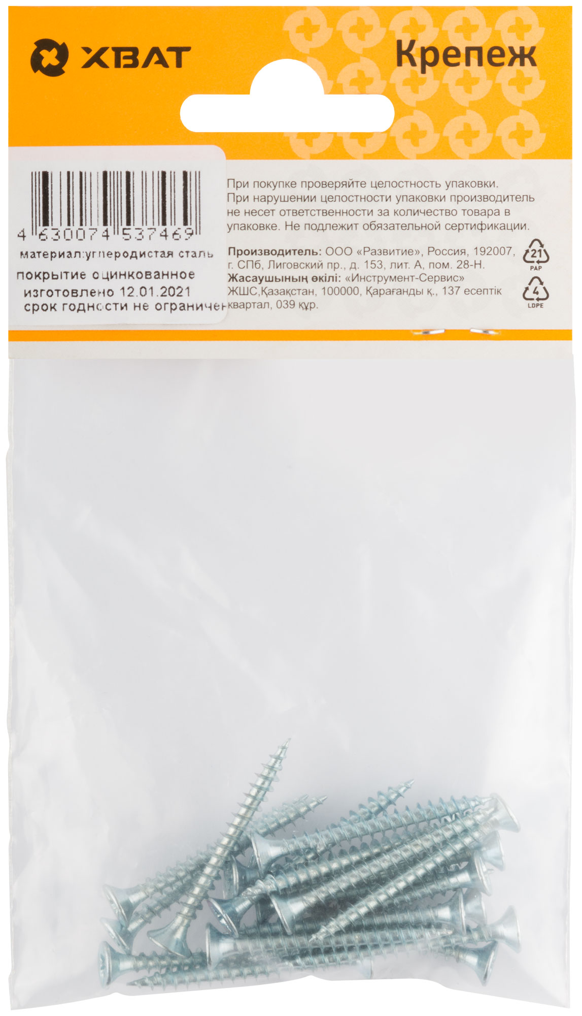 Универсальные стальные оцинкованные (белый цвет) саморезы применяются для крепления к различным материалам: дерево, ДСП, пластмасса, тонкие металлические листы без предварительного сверления. Резьба полная и неполная, потайная головка, шлиц Pz1 (если диаметр самореза от 2,5 до 3мм), шлиц Pz2 (если диаметр самореза от 3,5 до 5мм), шлиц Pz3 (если диаметр самореза 6мм). Широко используется для установки в дюбели при монтаже в бетон, кирпич и т.п.