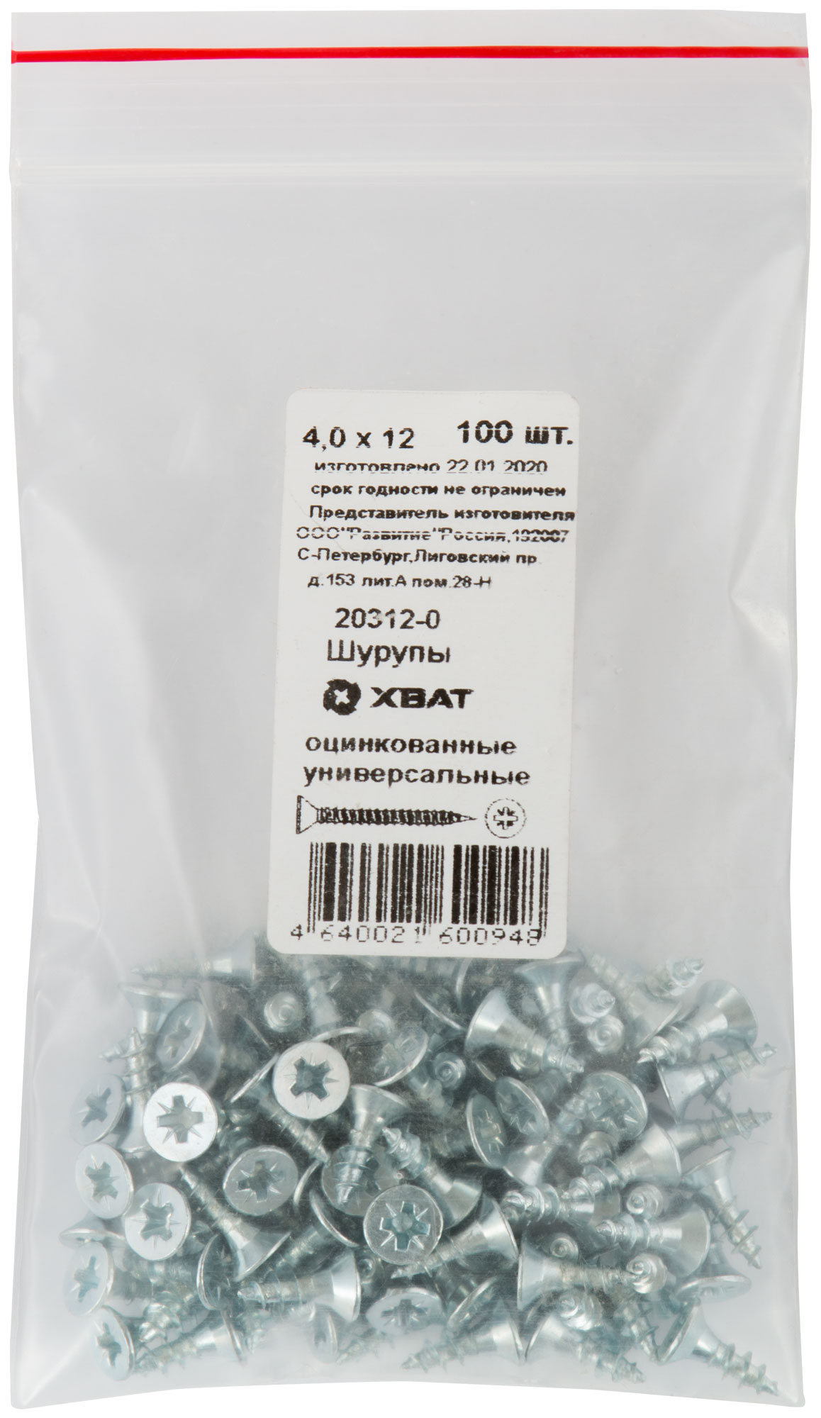Шурупы оцинкованные, универсальные 4 х 12 100 шт Фасовка