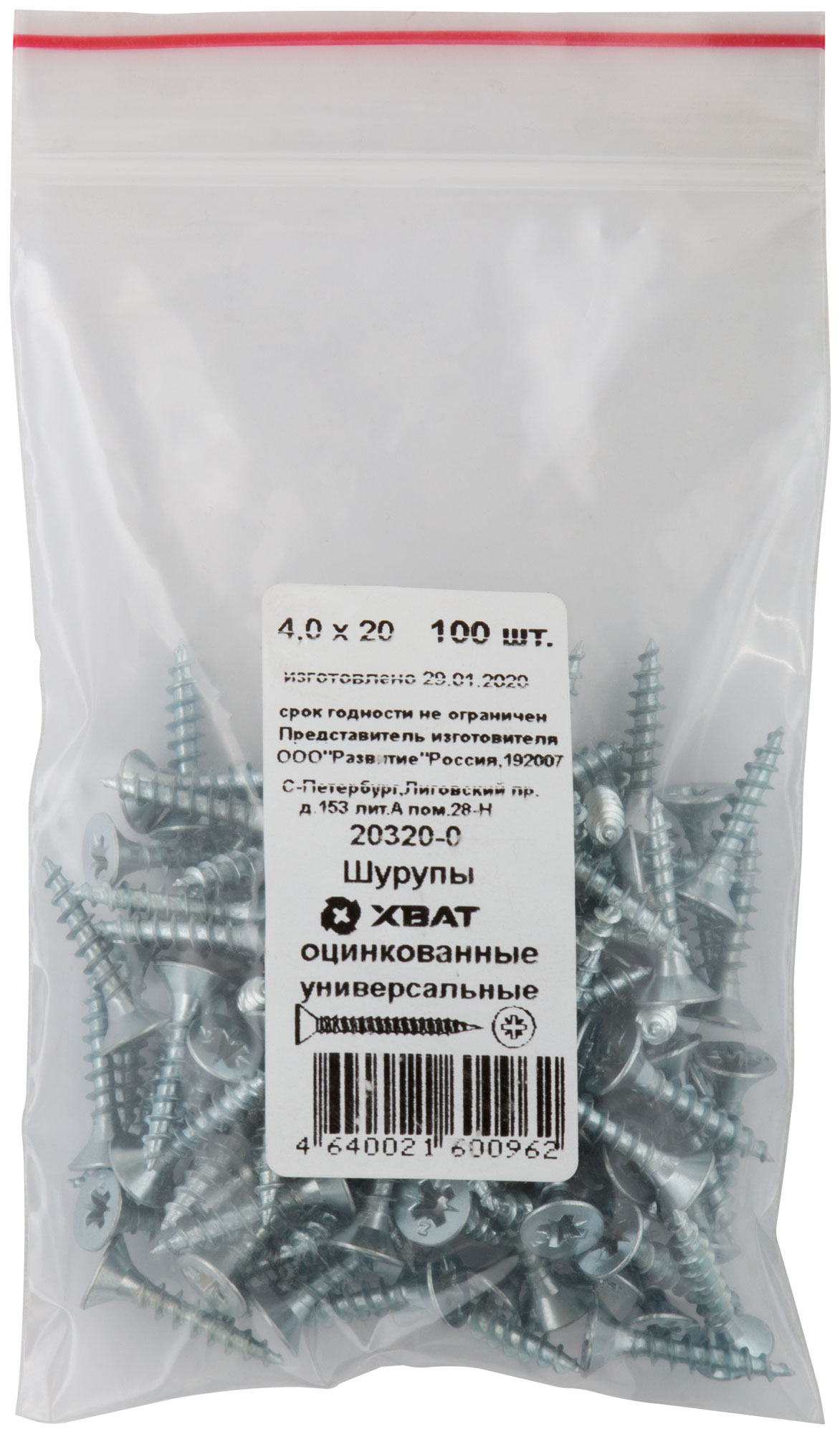 Шурупы оцинкованные, универсальные 4 х 20 100 шт Фасовка