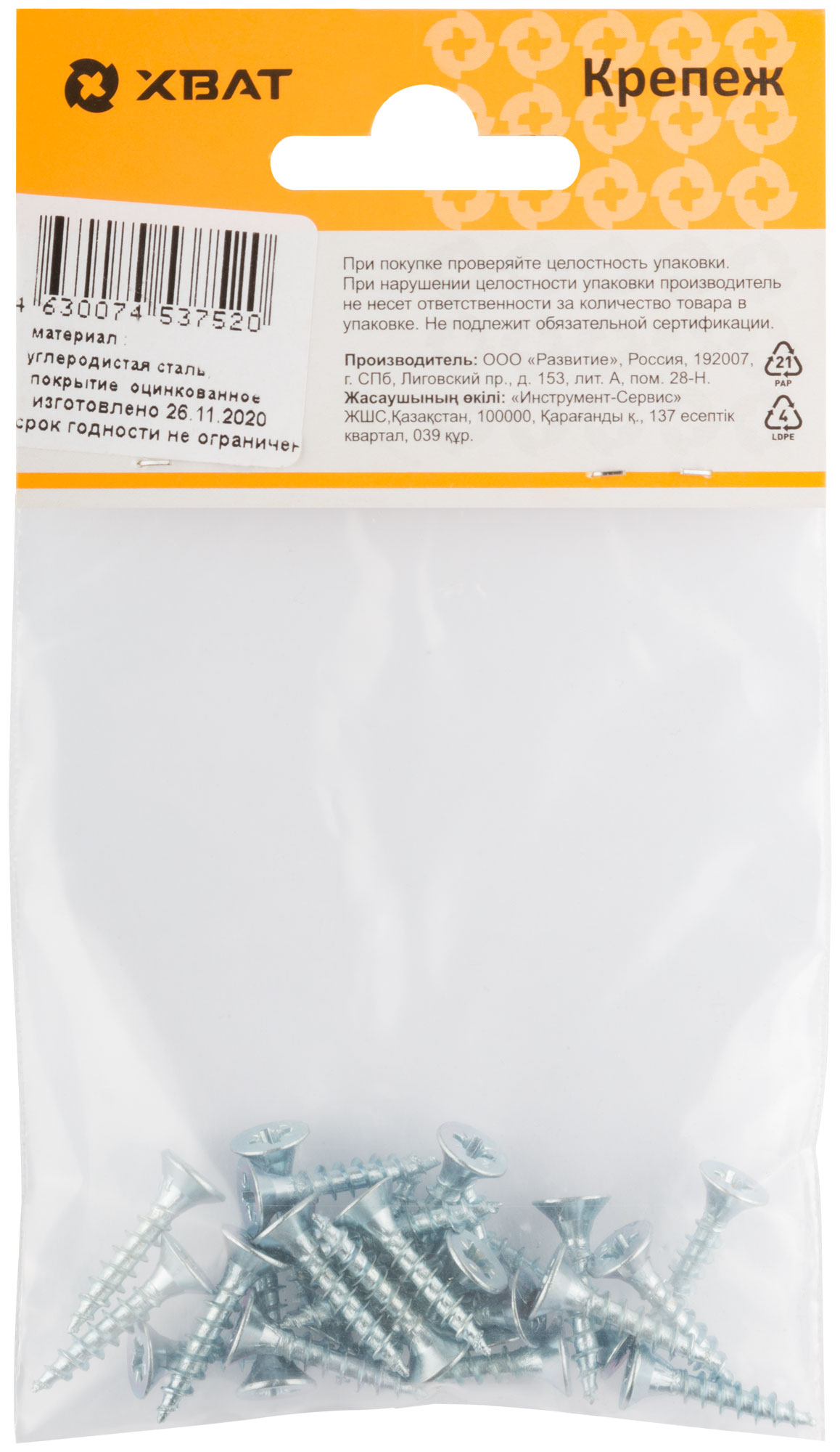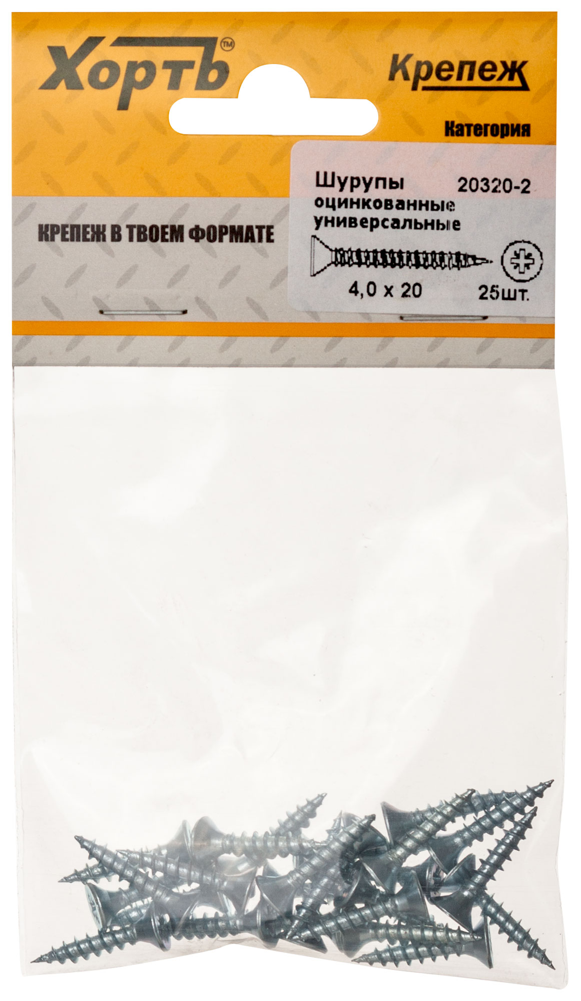 Шурупы оцинкованные, универсальные 4 х 20 ( фасовка 25 шт.)