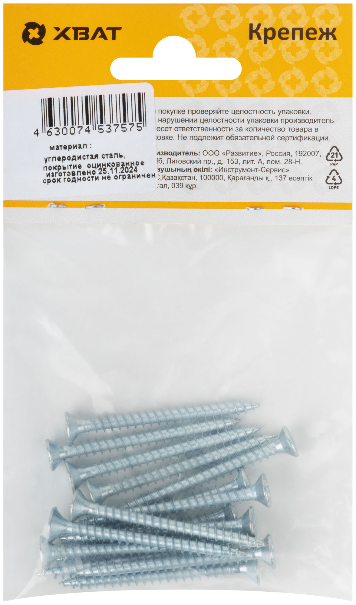 Шурупы оцинкованные, универсальные 4 х 45 ( фасовка 13 шт.)