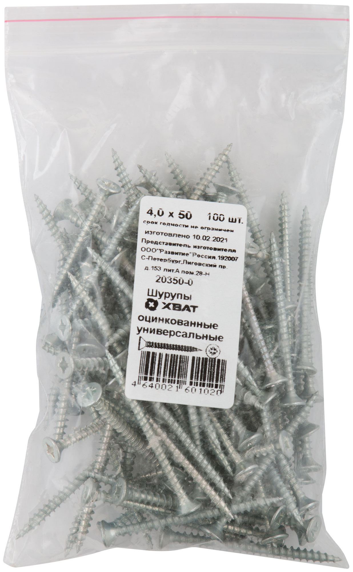 Шурупы оцинкованные, универсальные 4 х 50 100 шт Фасовка