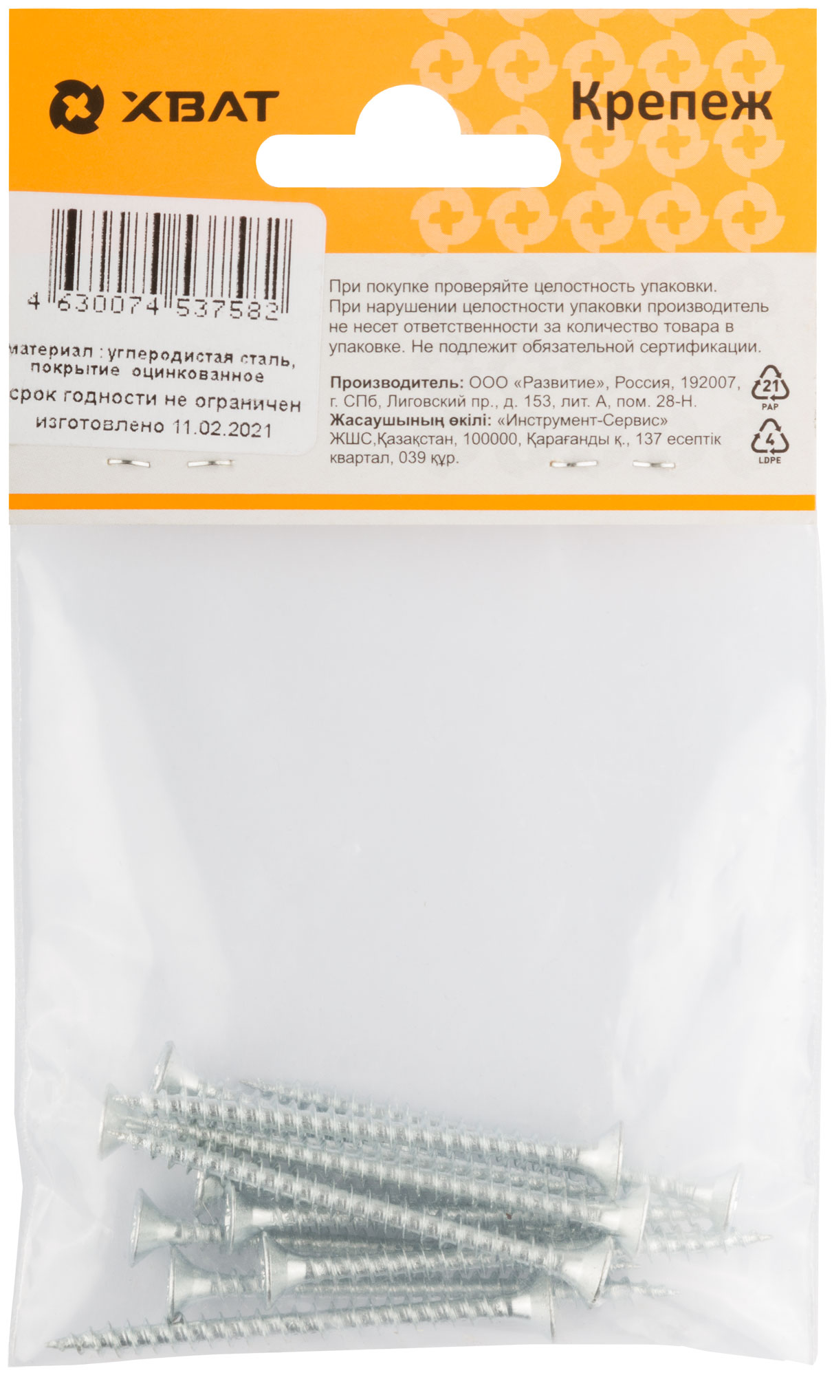 Шурупы оцинкованные, универсальные 4 х 50 ( фасовка 12 шт.)
