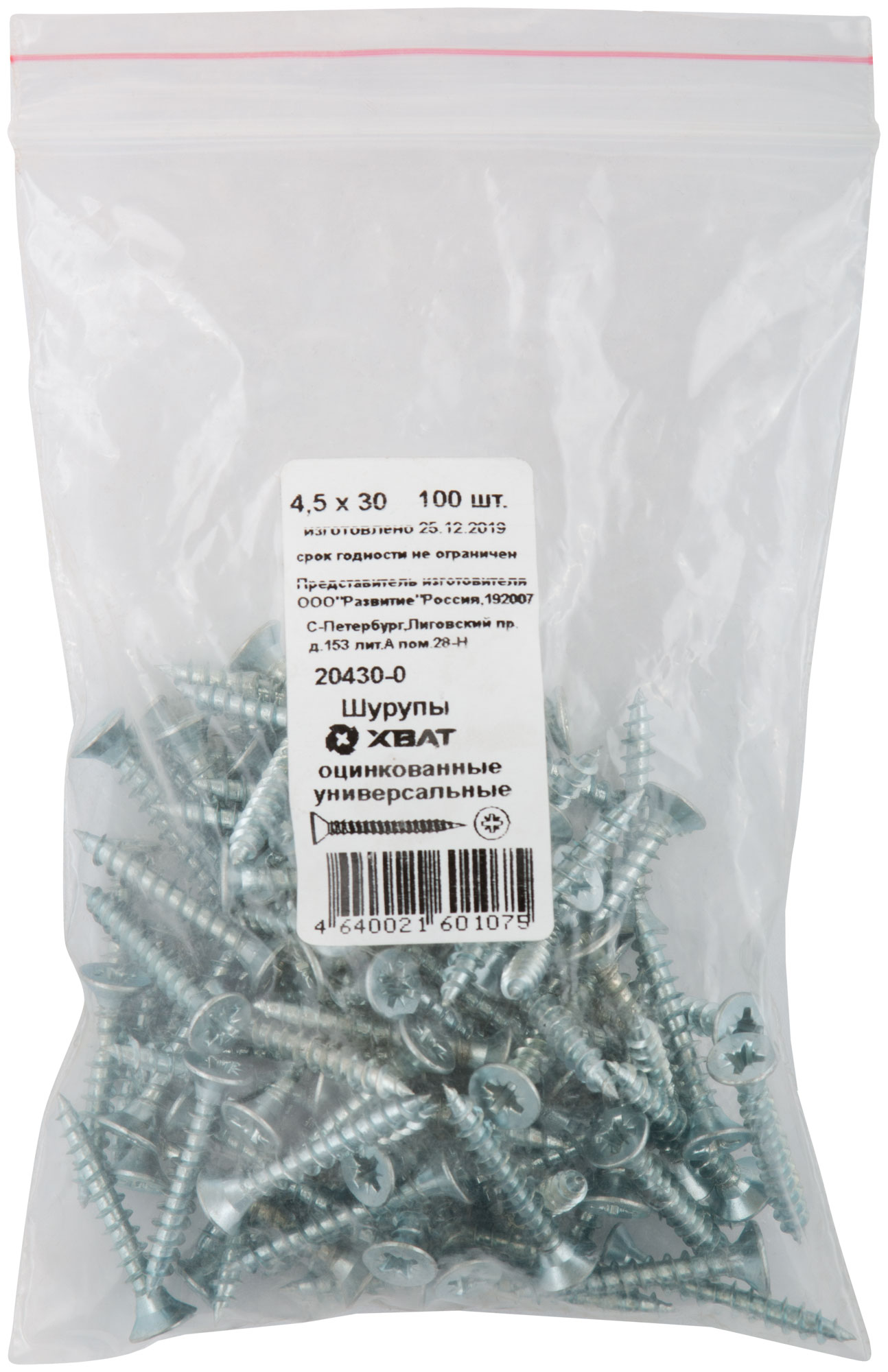 Шурупы оцинкованные, универсальные 4,5 х 30 100 шт Фасовка