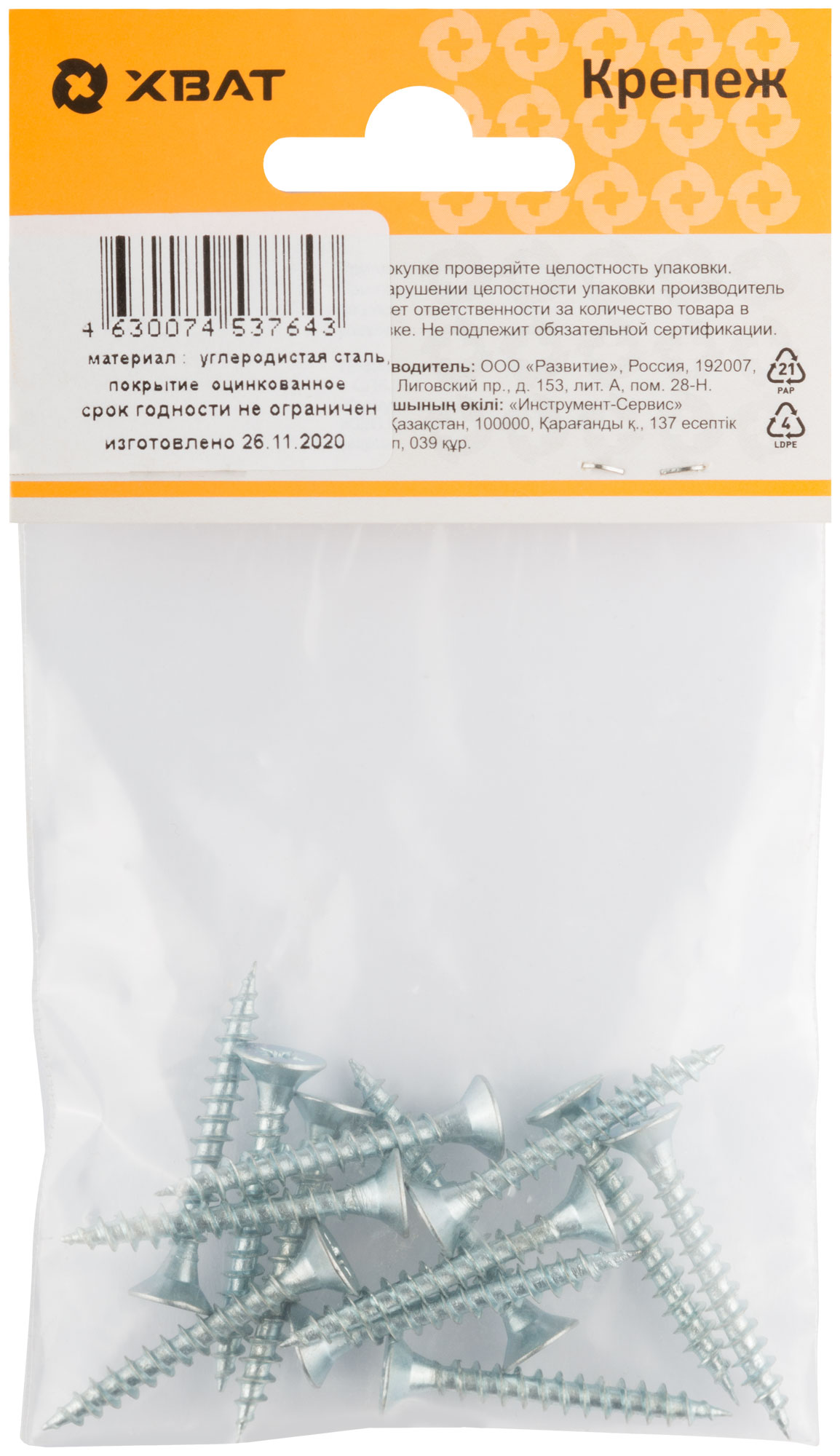 Универсальные стальные оцинкованные (белый цвет) саморезы применяются для крепления к различным материалам: дерево, ДСП, пластмасса, тонкие металлические листы без предварительного сверления. Резьба полная и неполная, потайная головка, шлиц Pz1 (если диаметр самореза от 2,5 до 3мм), шлиц Pz2 (если диаметр самореза от 3,5 до 5мм), шлиц Pz3 (если диаметр самореза 6мм). Широко используется для установки в дюбели при монтаже в бетон, кирпич и т.п.