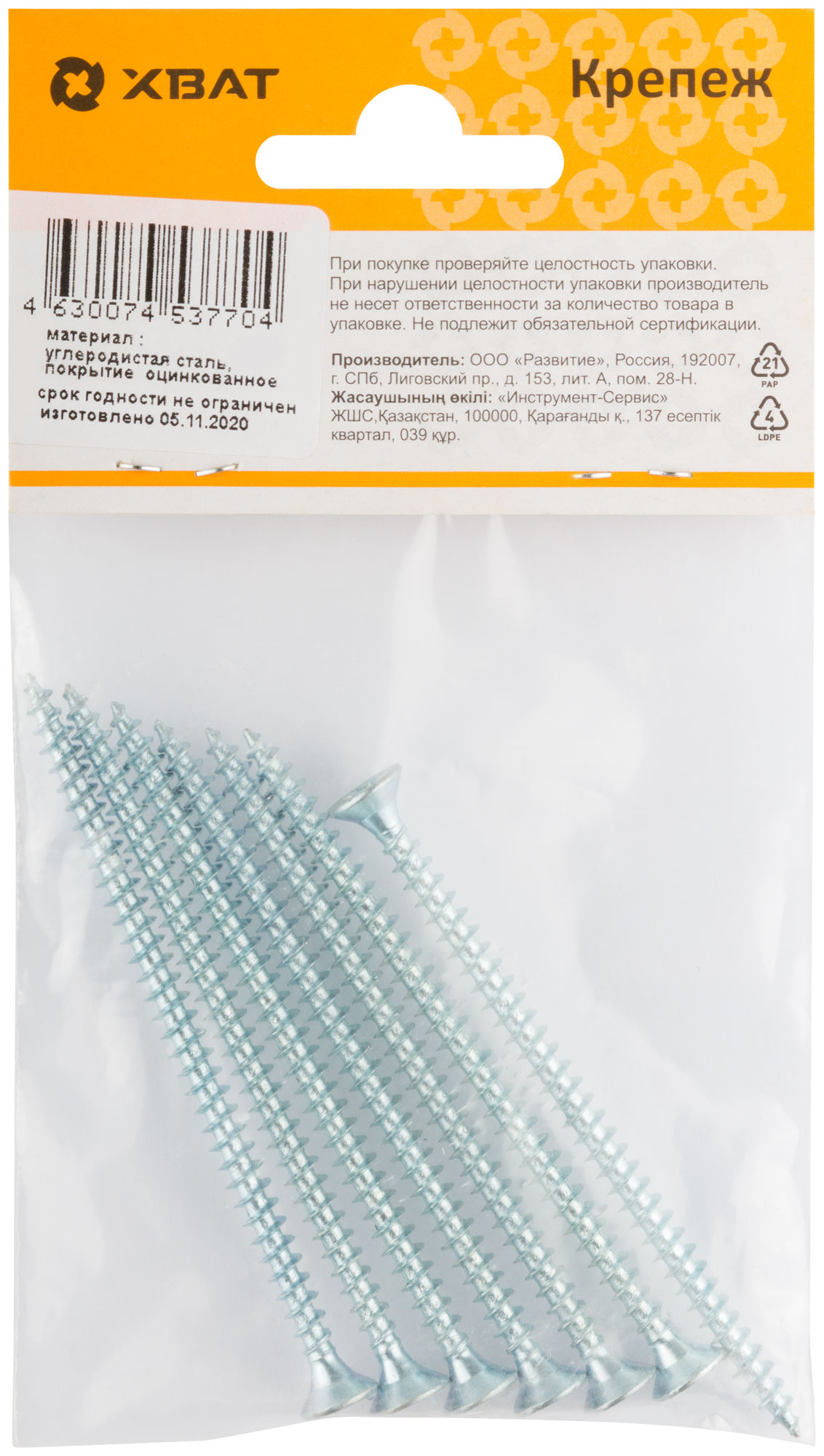 Шурупы оцинкованные, универсальные 4.5 х 80 ( фасовка 7 шт.)