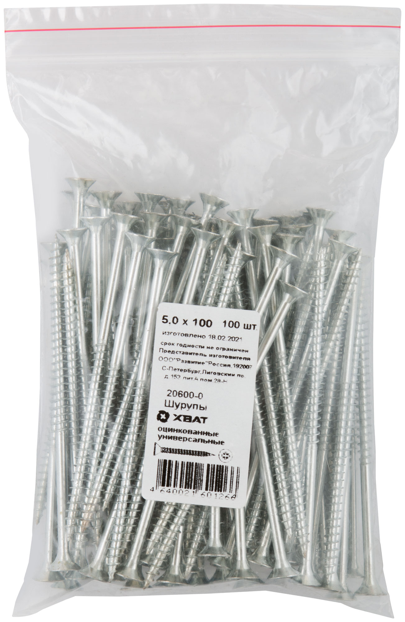 Шурупы оцинкованные, универсальные 5 х 100 100 шт Фасовка
