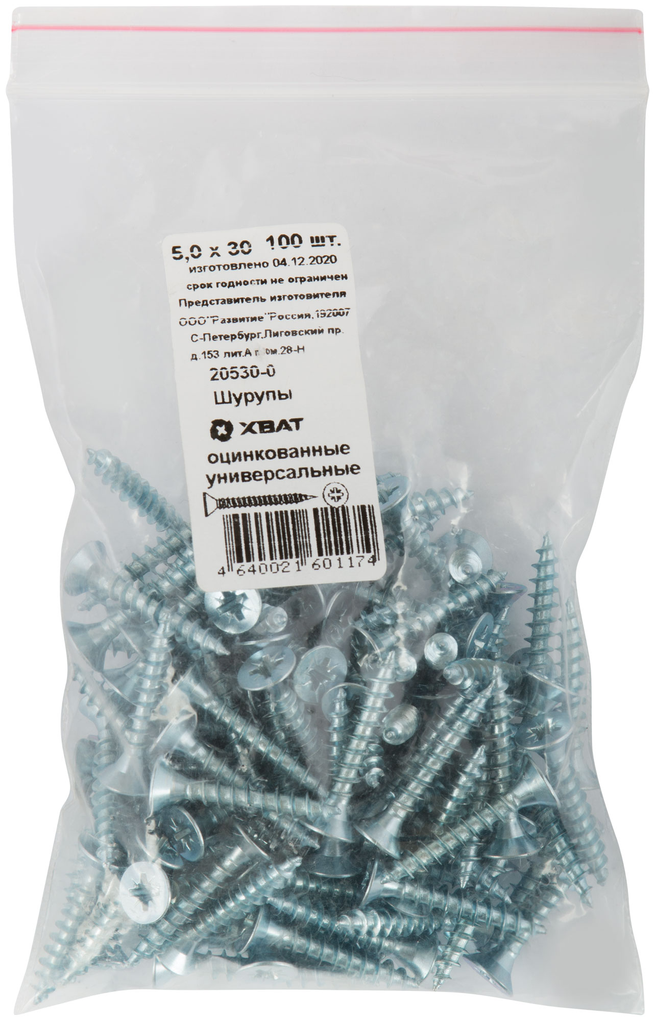 Шурупы оцинкованные, универсальные 5 х 30 100 шт Фасовка