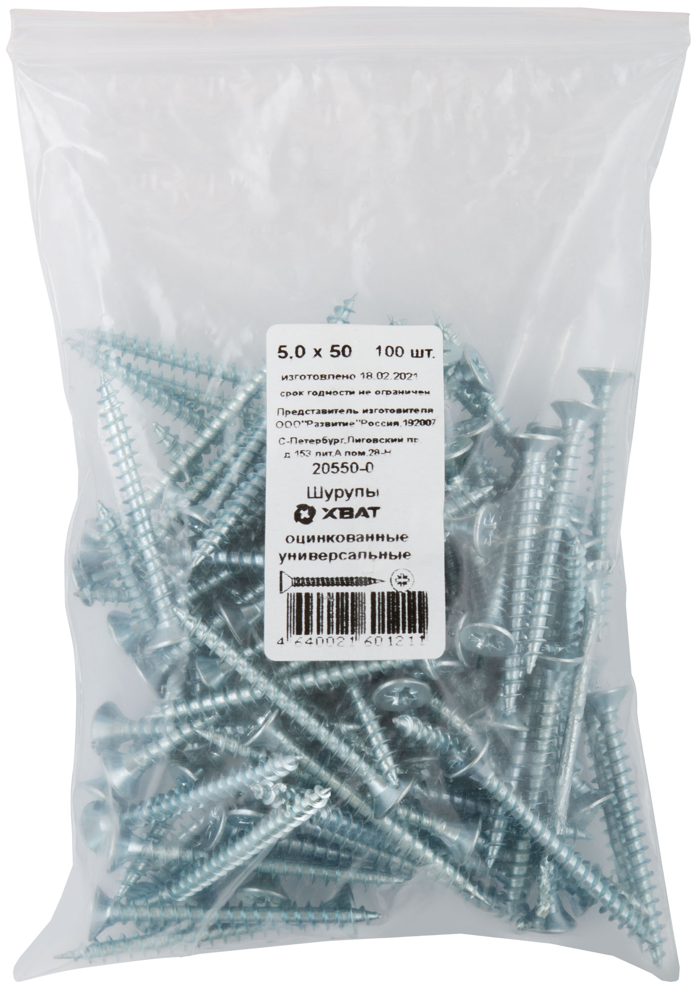 Шурупы оцинкованные, универсальные 5 х 50 100 шт Фасовка