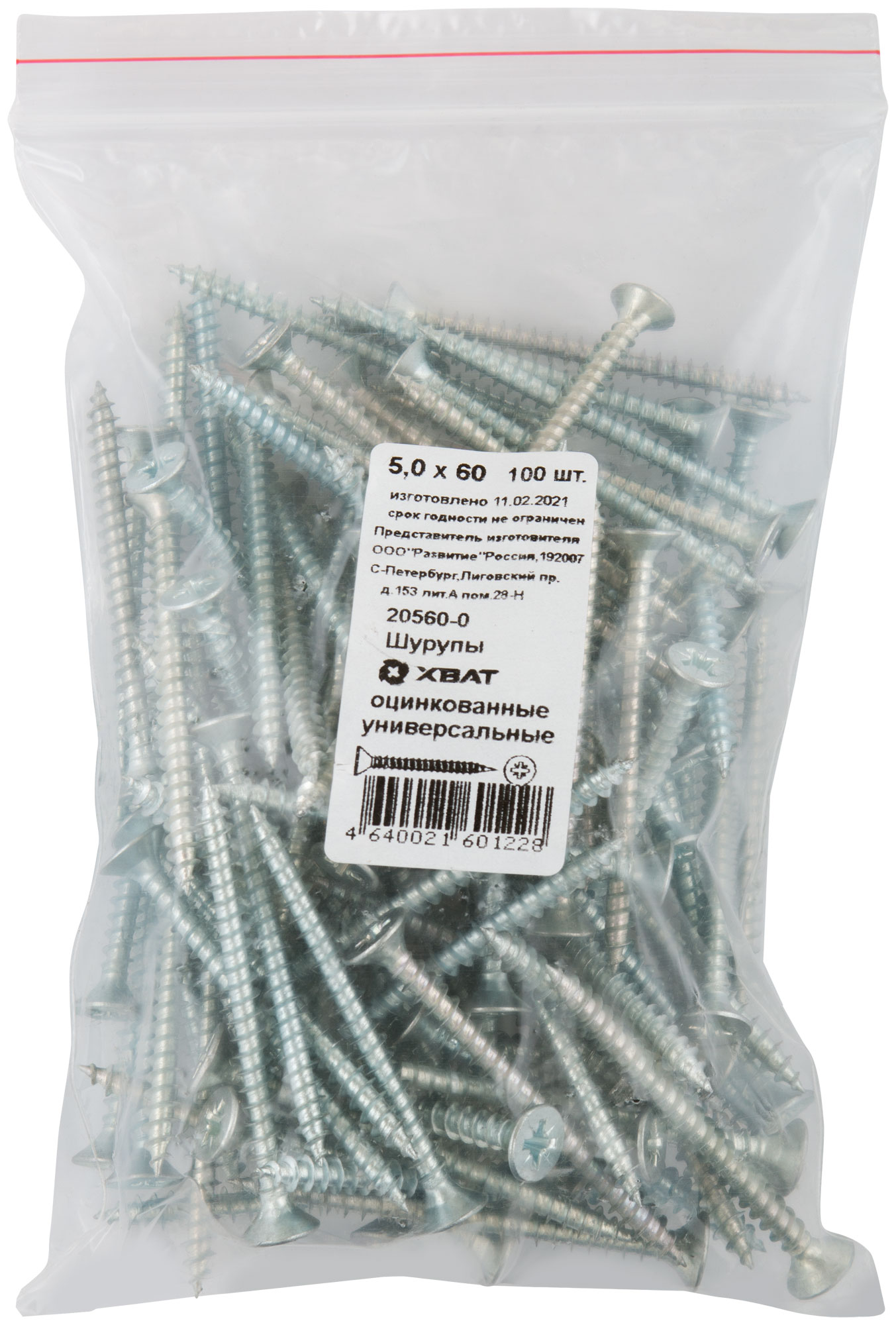 Шурупы оцинкованные, универсальные 5 х 60 100 шт Фасовка
