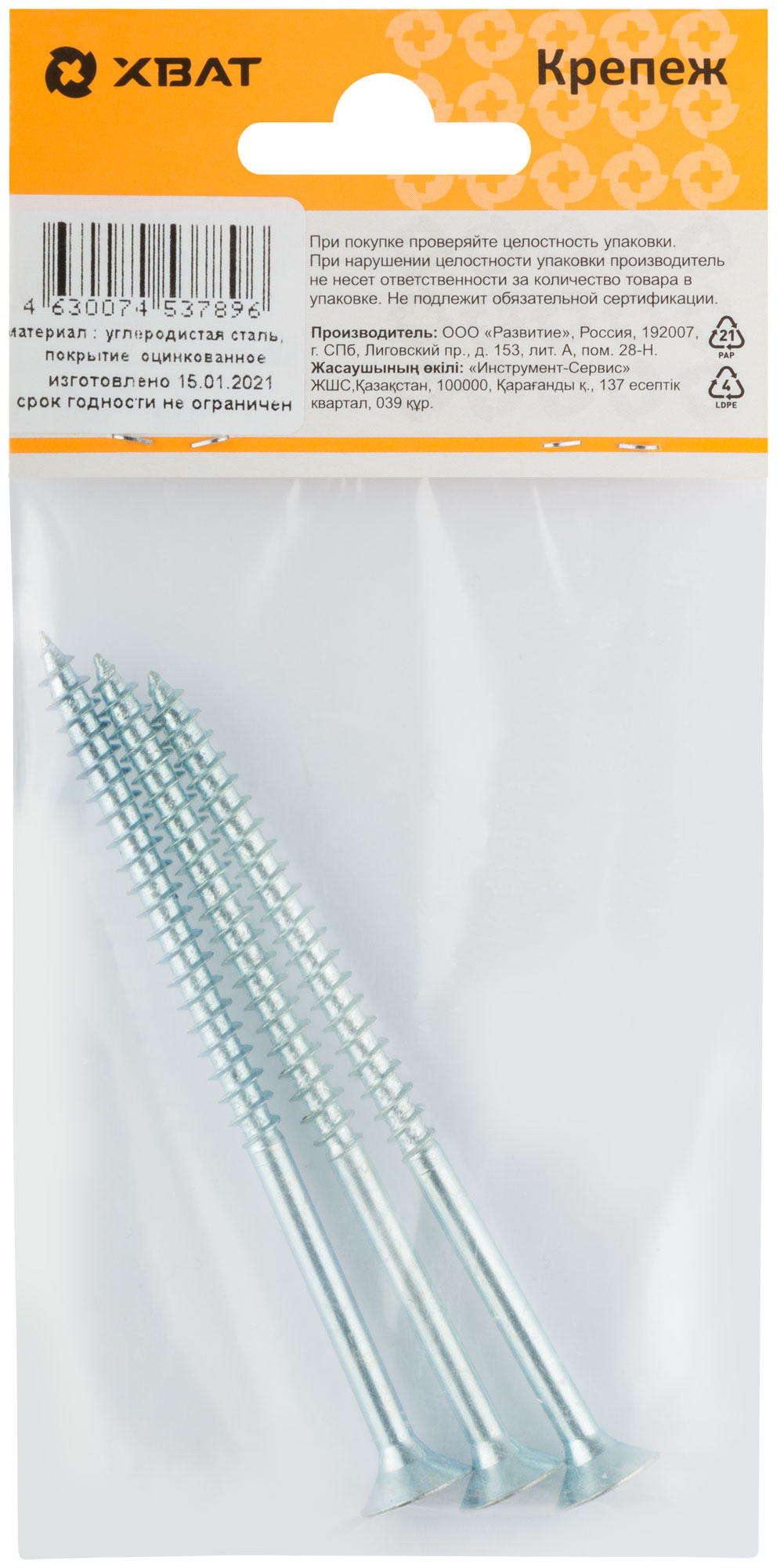Шурупы оцинкованные, универсальные 6 х 100 ( фасовка 3 шт.)