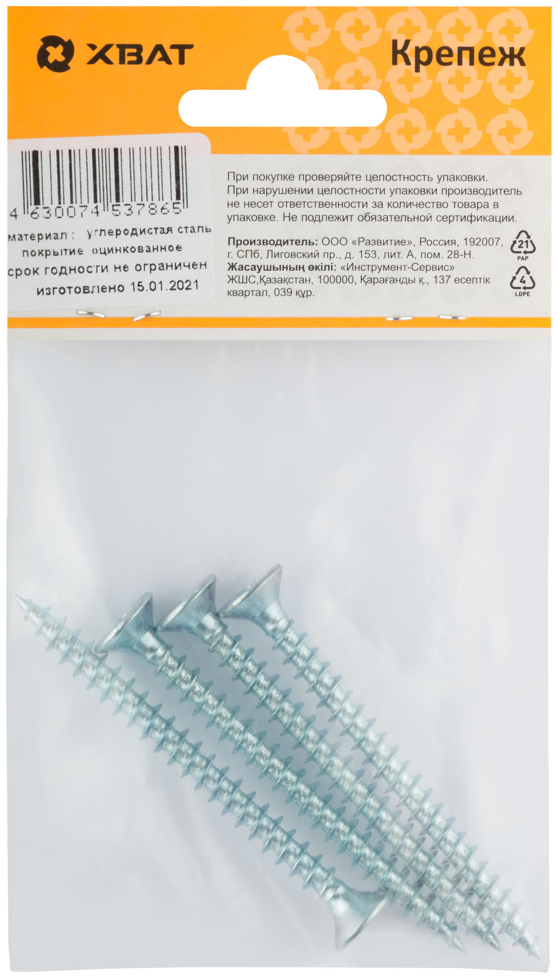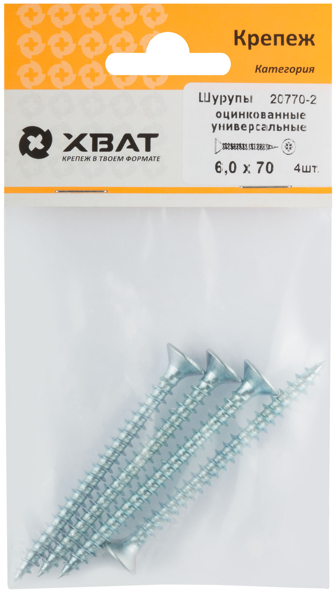 Шурупы оцинкованные, универсальные 6 х 70 ( фасовка 4 шт.)