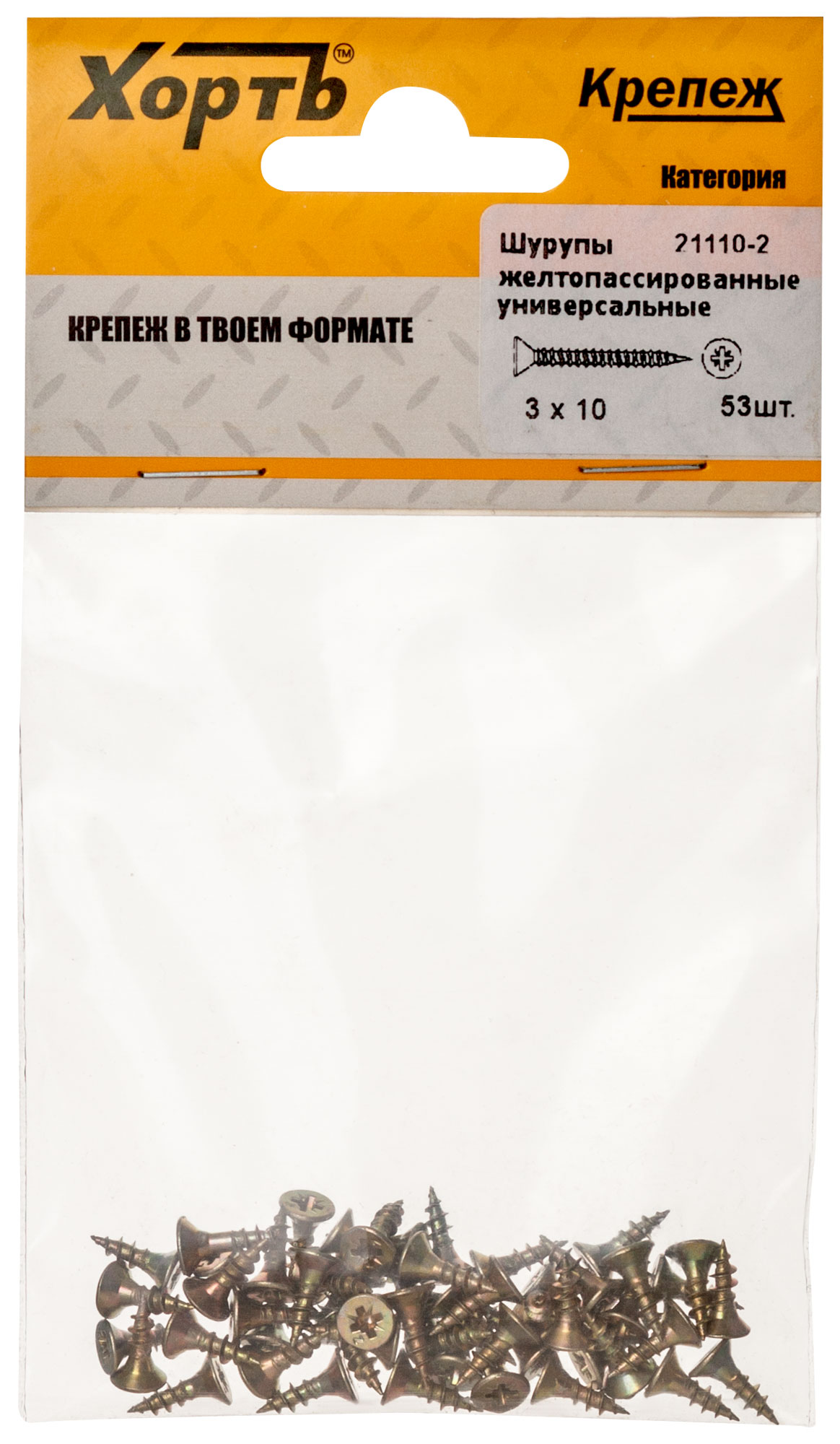 Шурупы желтопассированные, универсальные 3 х 10 (фасовка 53 шт.)