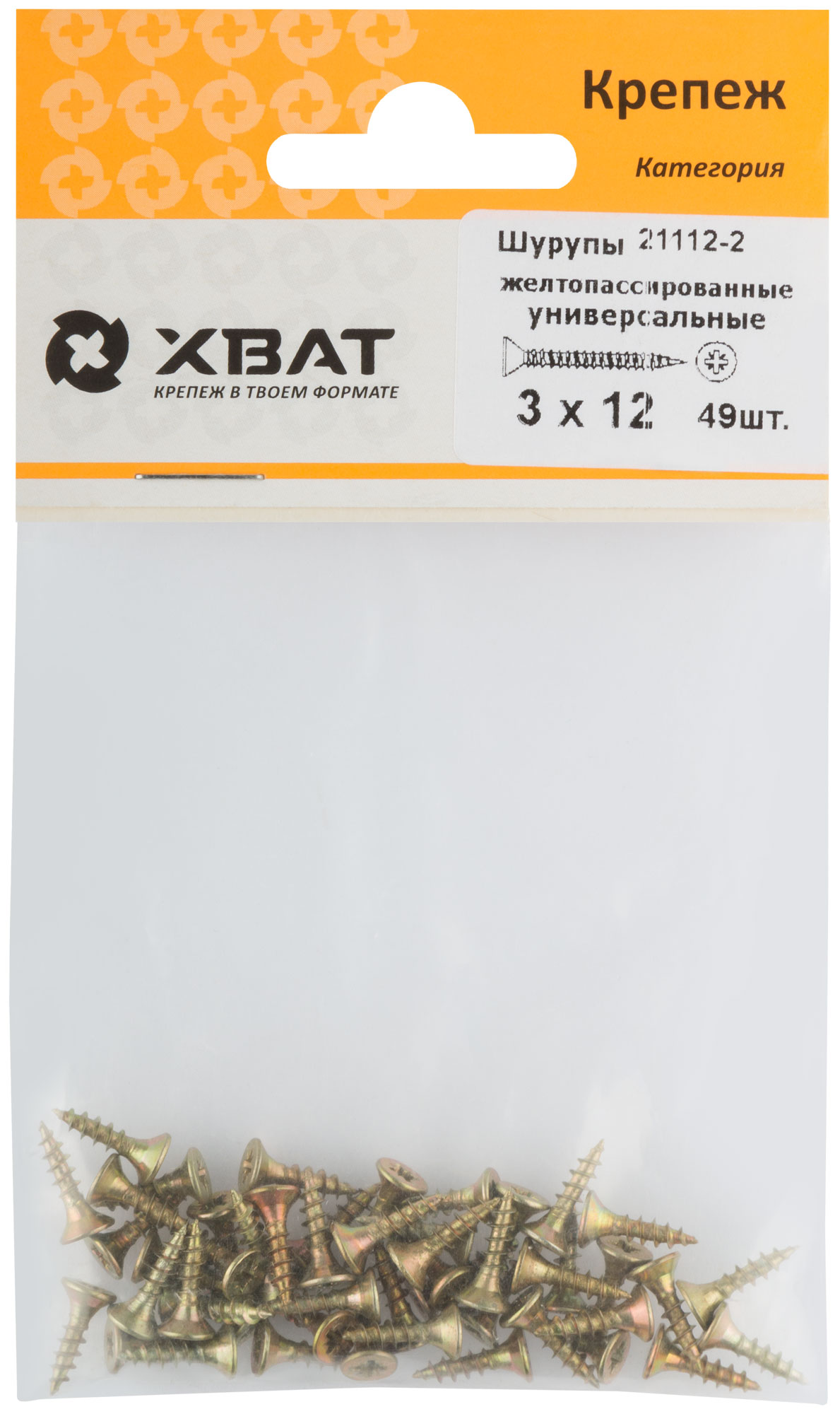 Шурупы желтопассированные, универсальные 3 х 12 (фасовка 49 шт.)