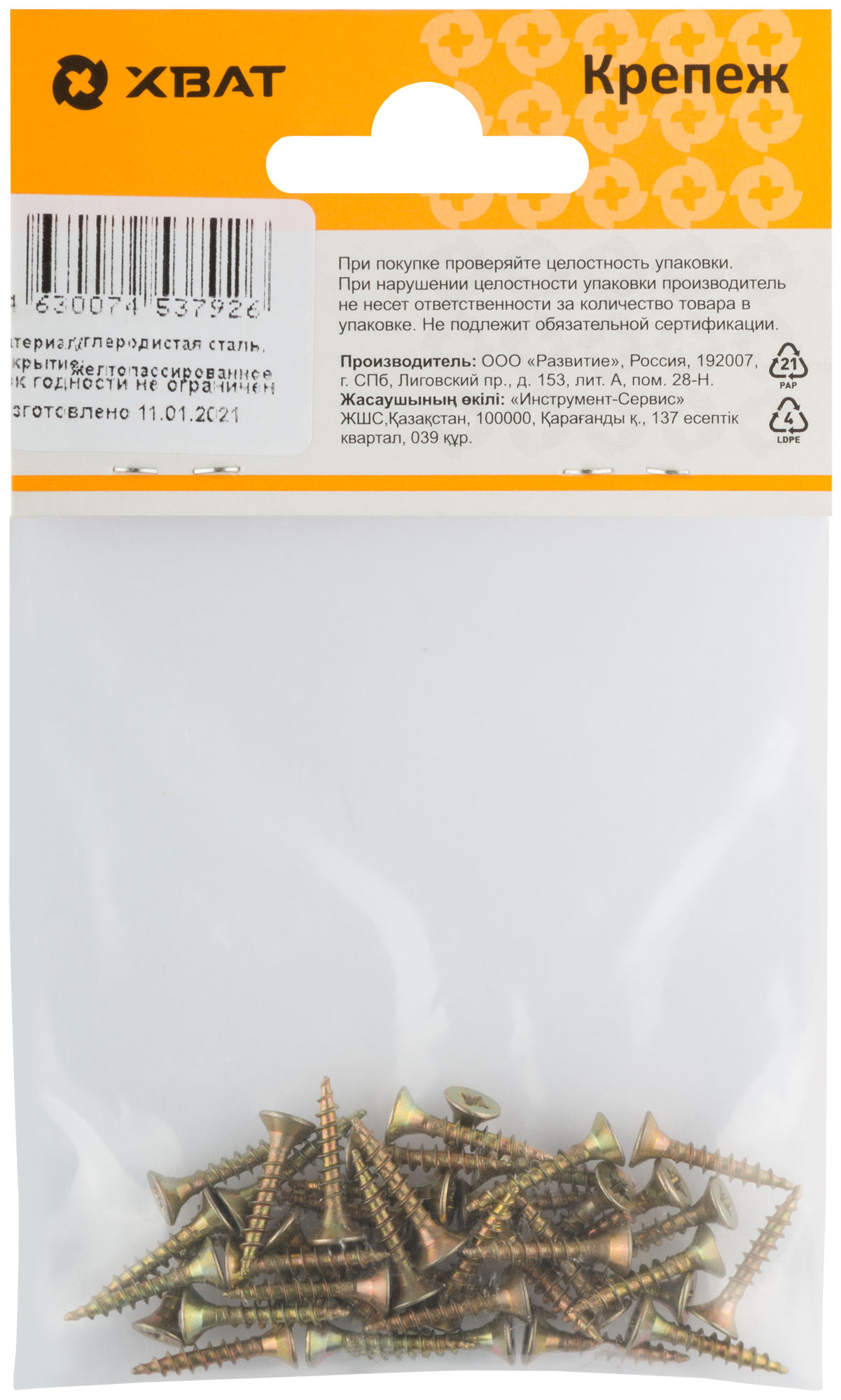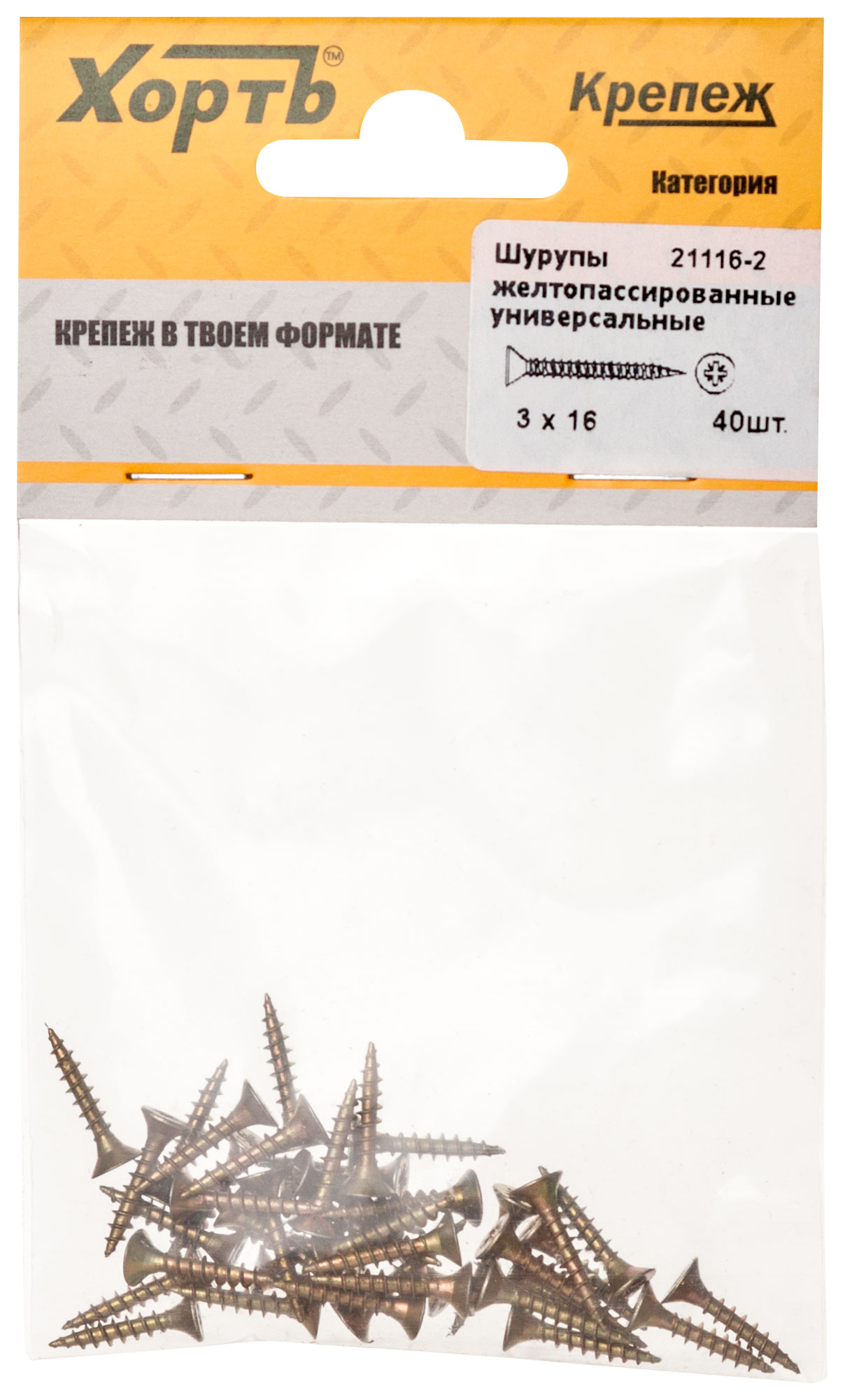 Шурупы желтопассированные, универсальные 3 х 16 (фасовка 40 шт.)