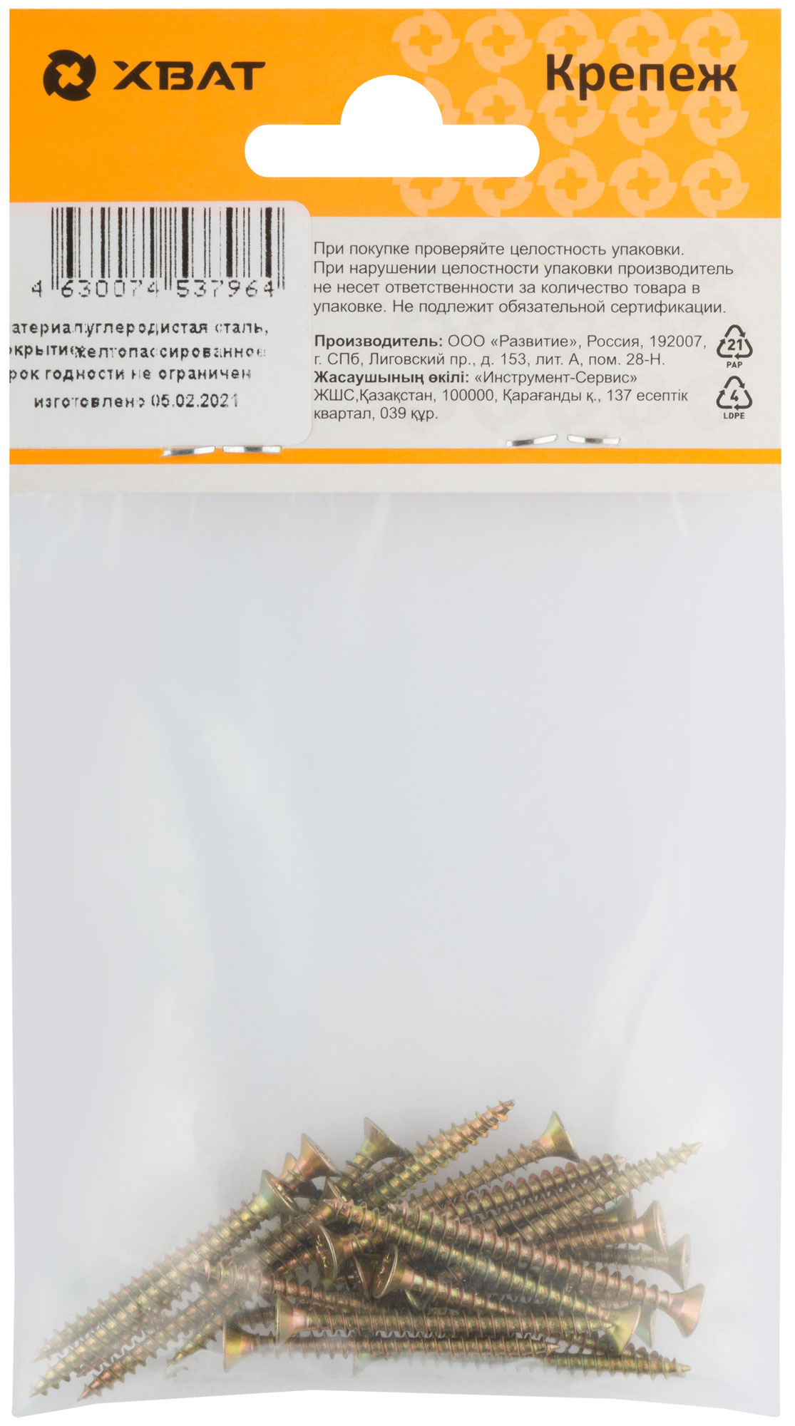 Универсальные стальные оцинкованные (жёлтый цвет) саморезы применяются для крепления к различным материалам: дерево, ДСП, пластмасса, тонкие металлические листы без предварительного сверления. Резьба полная и неполная, потайная головка, шлиц Pz1 (если диаметр самореза от 2,5 до 3мм), шлиц Pz2 (если диаметр самореза от 3,5 до 5мм), шлиц Pz3 (если диаметр самореза 6мм). Широко используется для установки в дюбели при монтаже в бетон, кирпич и т.п.