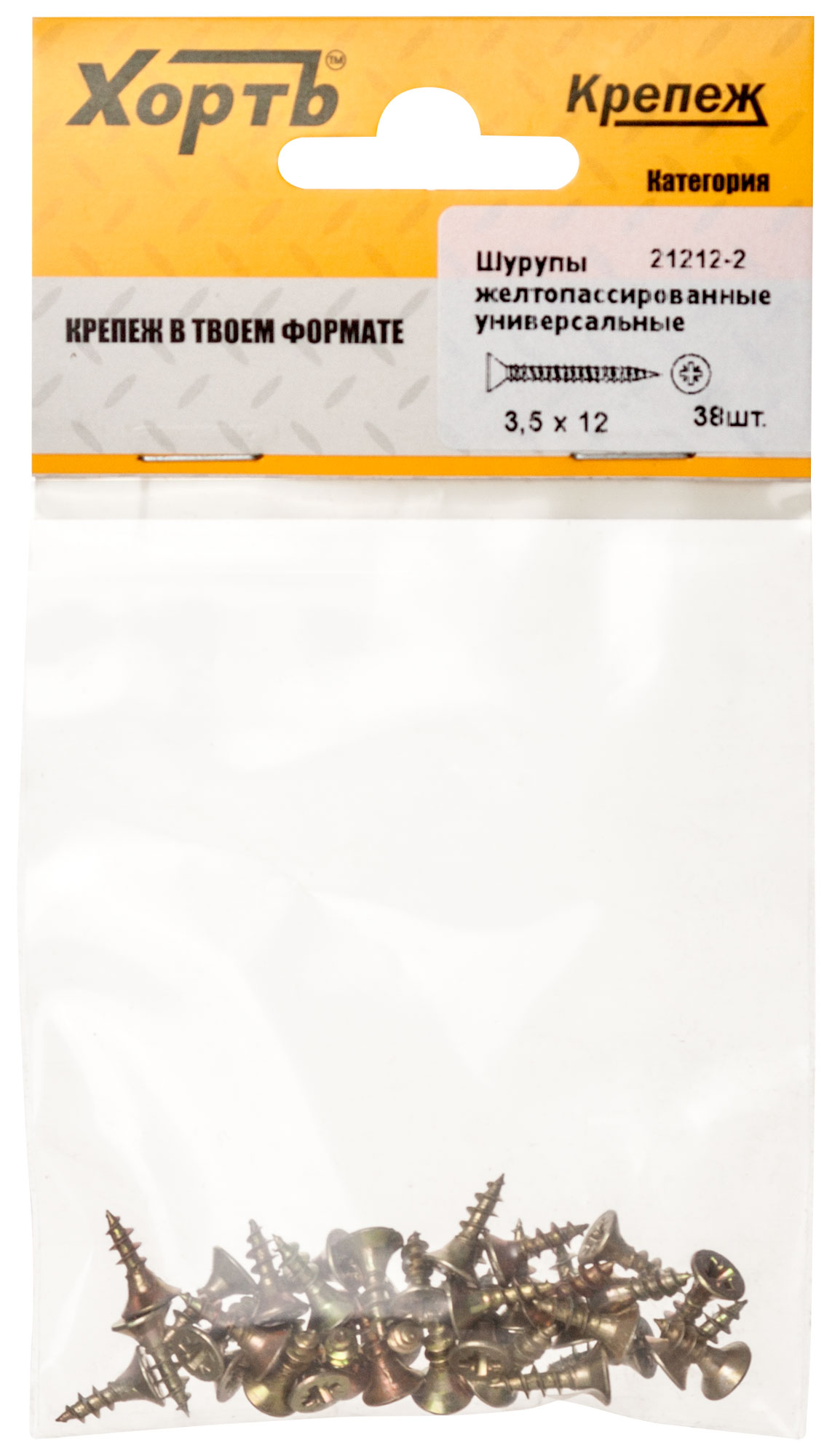 Шурупы желтопассированные, универсальные 3.5 х 12 (фасовка 38 шт.)