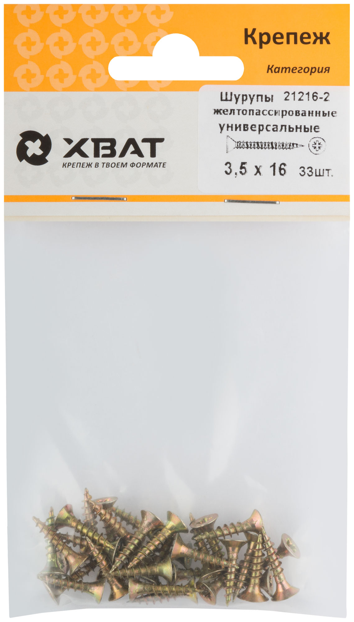 Шурупы желтопассированные, универсальные 3.5 х 16 (фасовка 33 шт.)