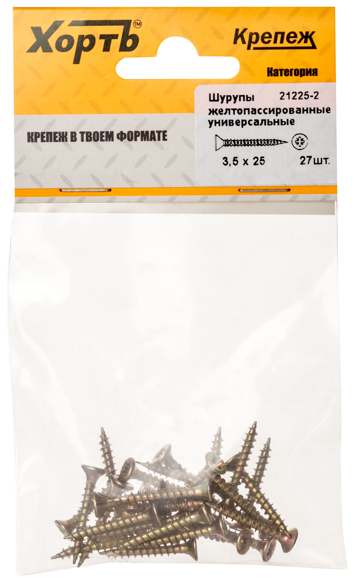 Шурупы желтопассированные, универсальные 3.5 х 25 (фасовка 27 шт.)