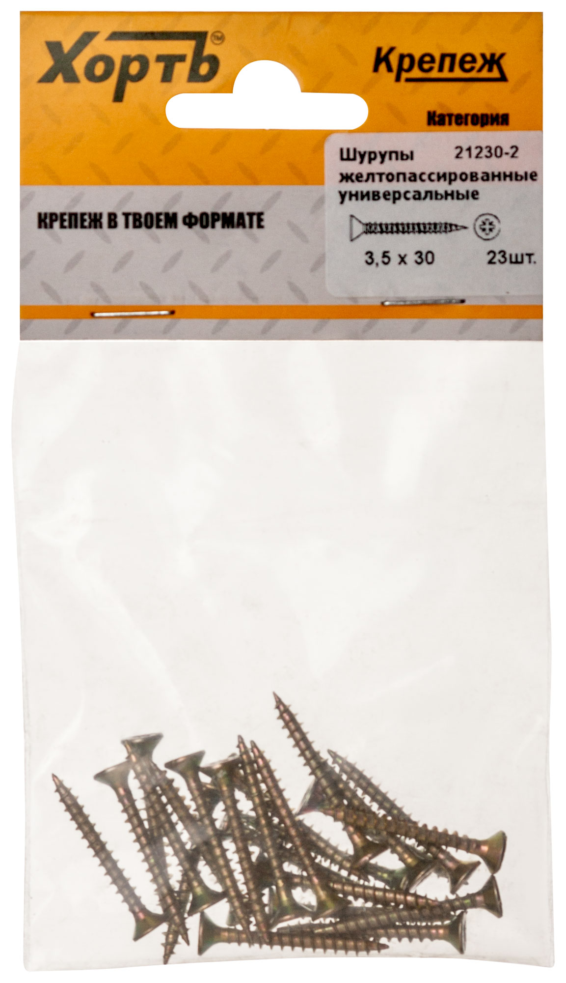 Шурупы желтопассированные, универсальные 3.5 х 30 (фасовка 23 шт.)