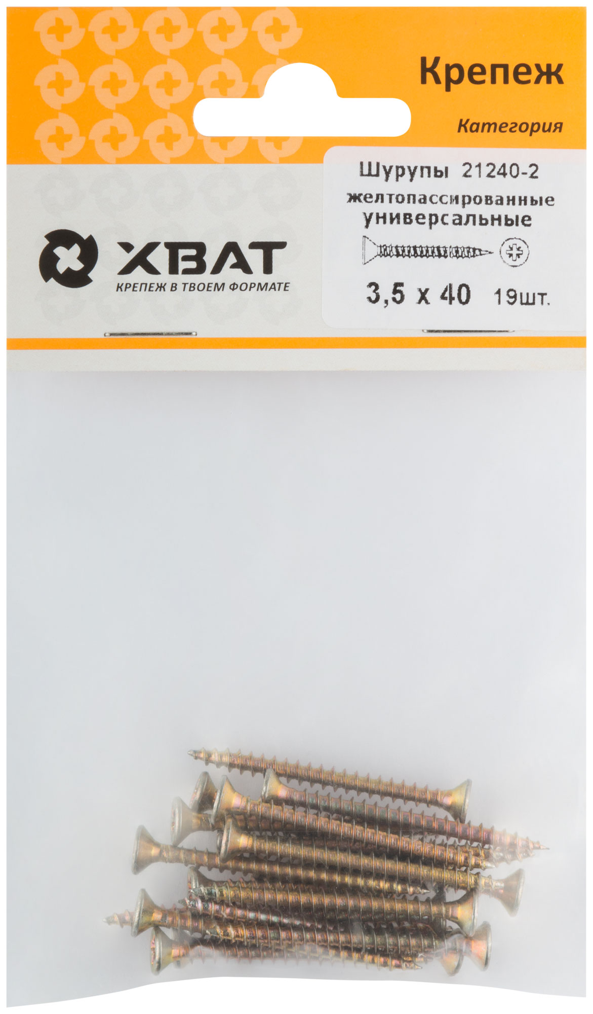 Шурупы желтопассированные, универсальные 3.5 х 40 (фасовка 19 шт.)