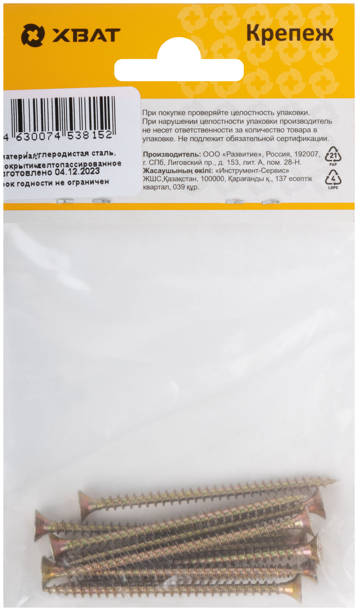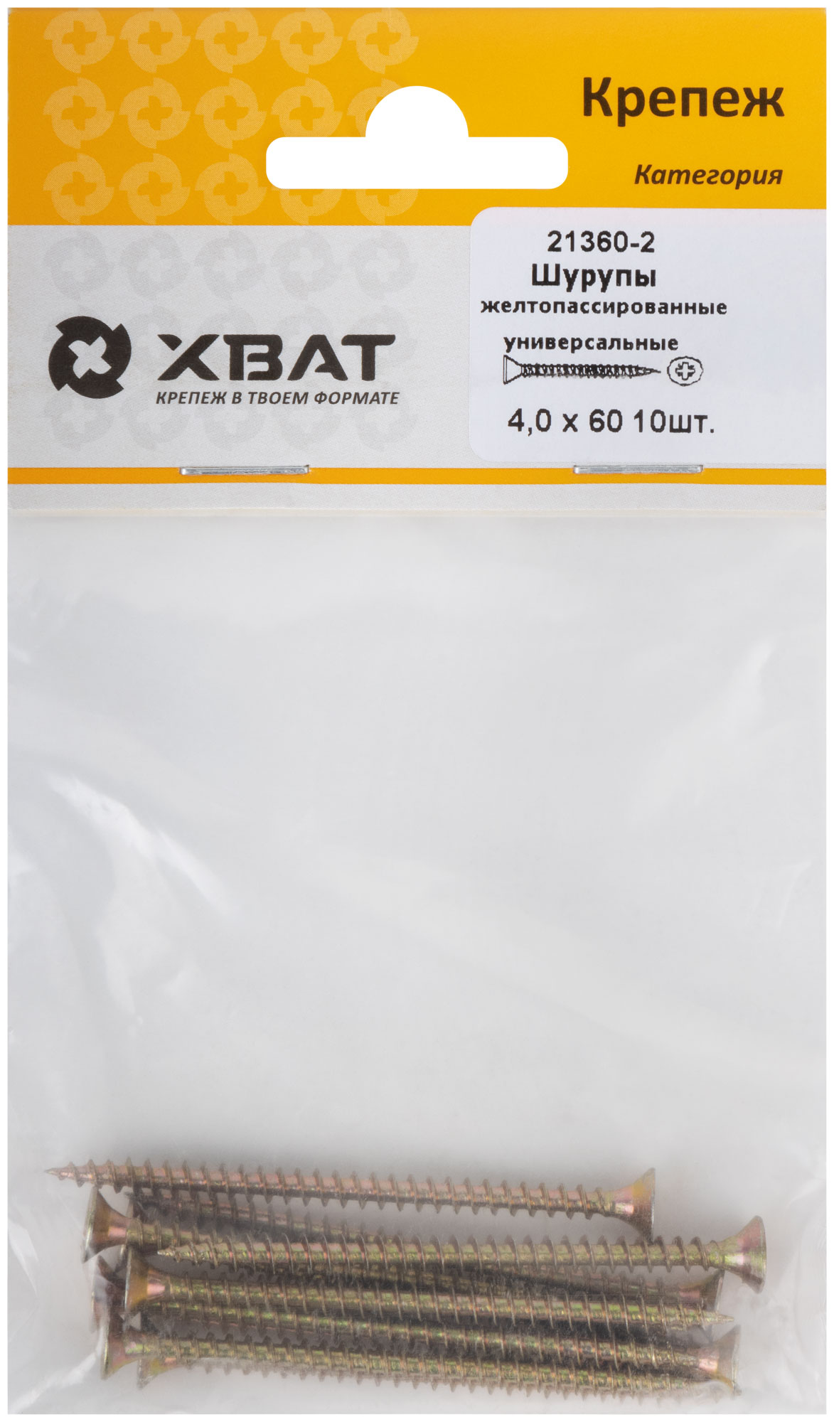 Шурупы желтопассированные, универсальные 4 х 60 (фасовка 10 шт.)