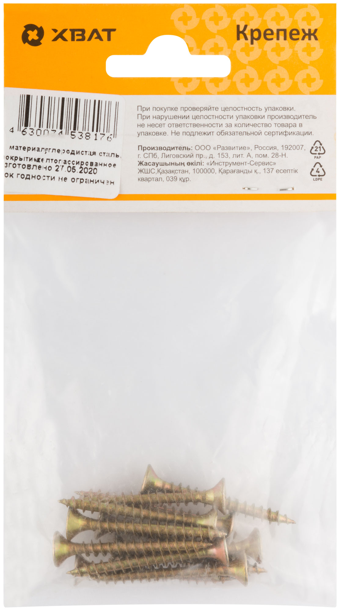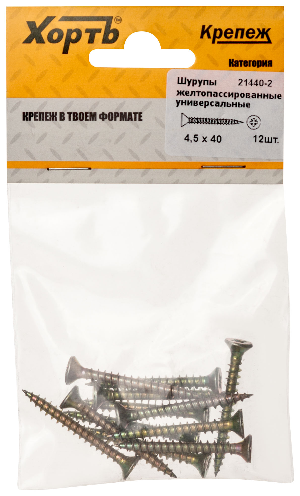 Шурупы желтопассированные, универсальные 4.5 х 40 (фасовка 12 шт.)