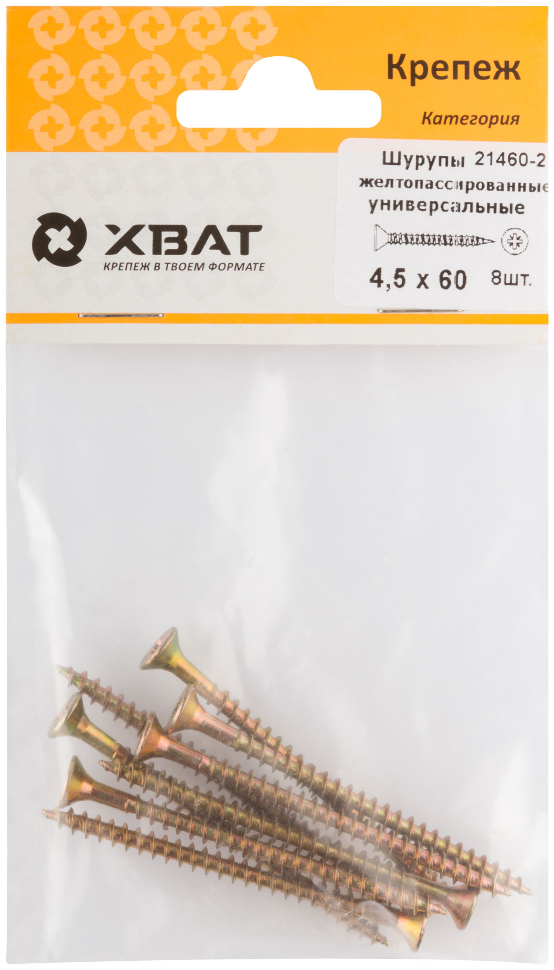 Шурупы желтопассированные, универсальные 4.5 х 60 (фасовка 8 шт.)