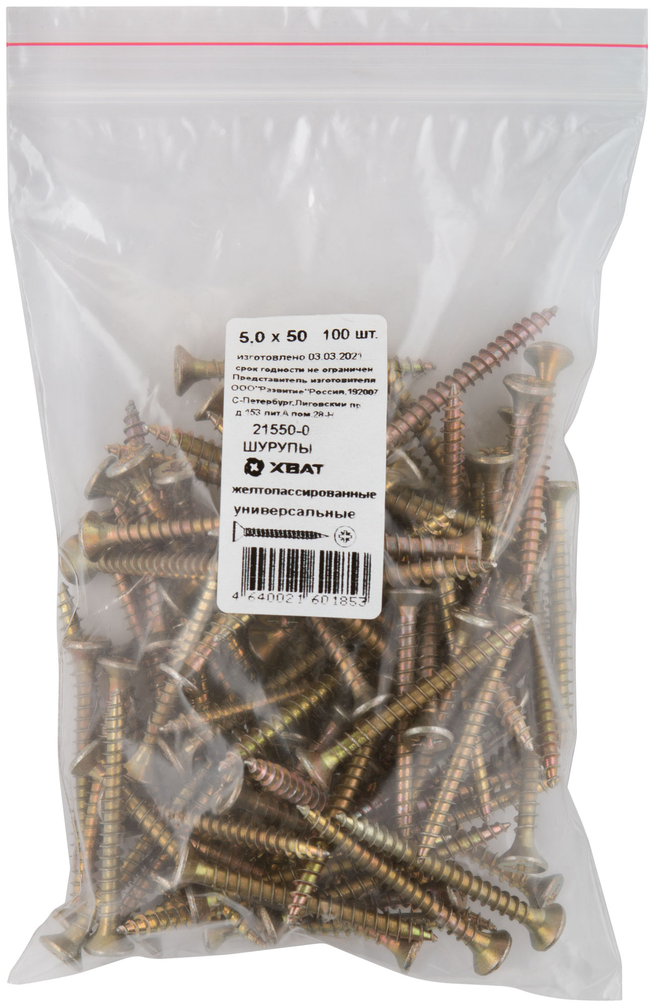 Шурупы желтопассированные, универсальные 5 х 50 100 шт Фасовка