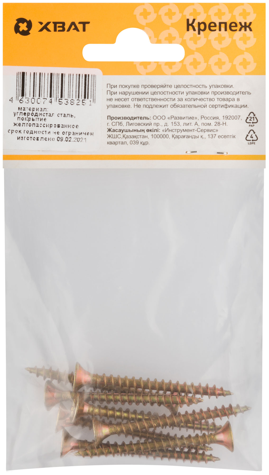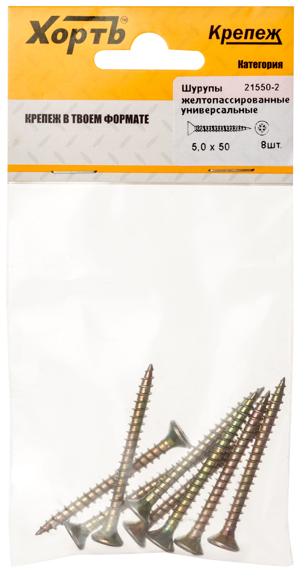 Шурупы желтопассированные, универсальные 5 х 50 (фасовка 8 шт.)