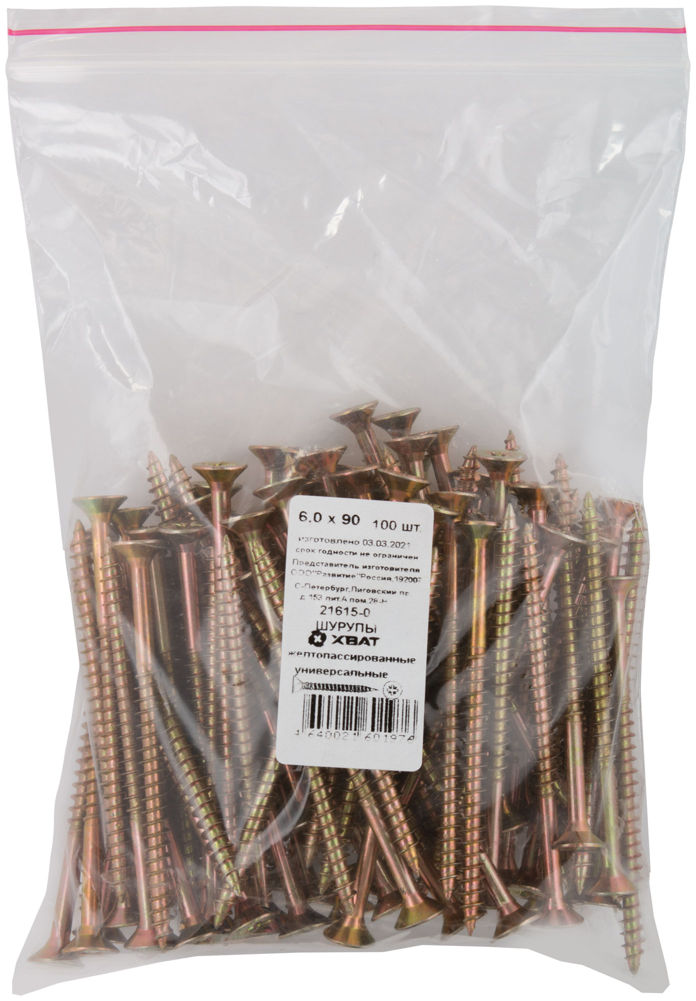 Шурупы желтопассированные, универсальные 6 х 90 100 шт Фасовка