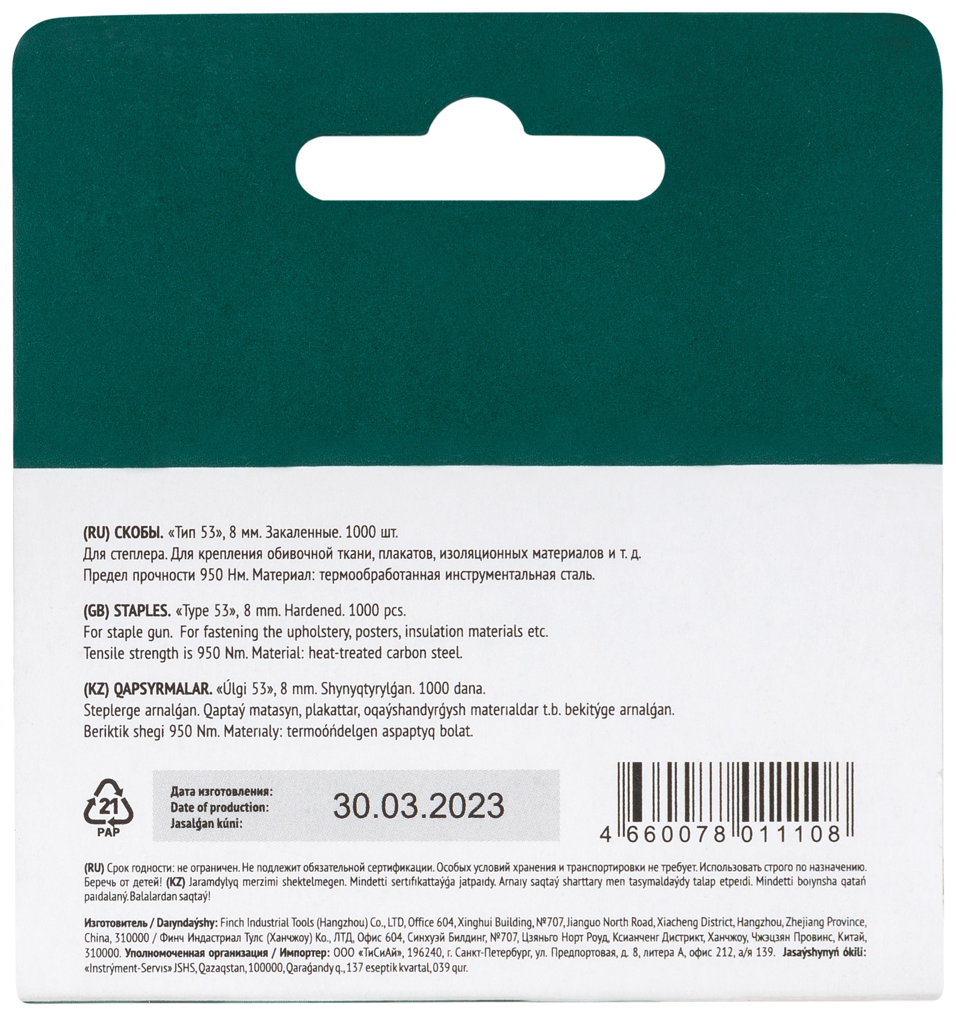 «Тип 53». Узкие, прямоугольные. Для степлеров 32081, 32084, 32086, 32095, 32104, 32114, 32120, 32123, 32135, 32145. Упаковка: коробка с подвесом.
