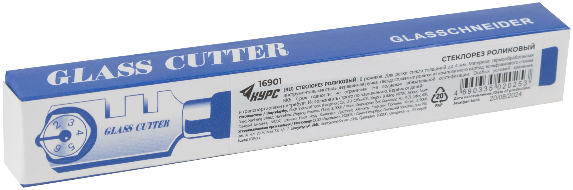 Для резки стекла толщиной до 4 мм. Материал: инструментальная сталь, деревянная ручка, твердосплавные ролики. Упаковка: блистер.