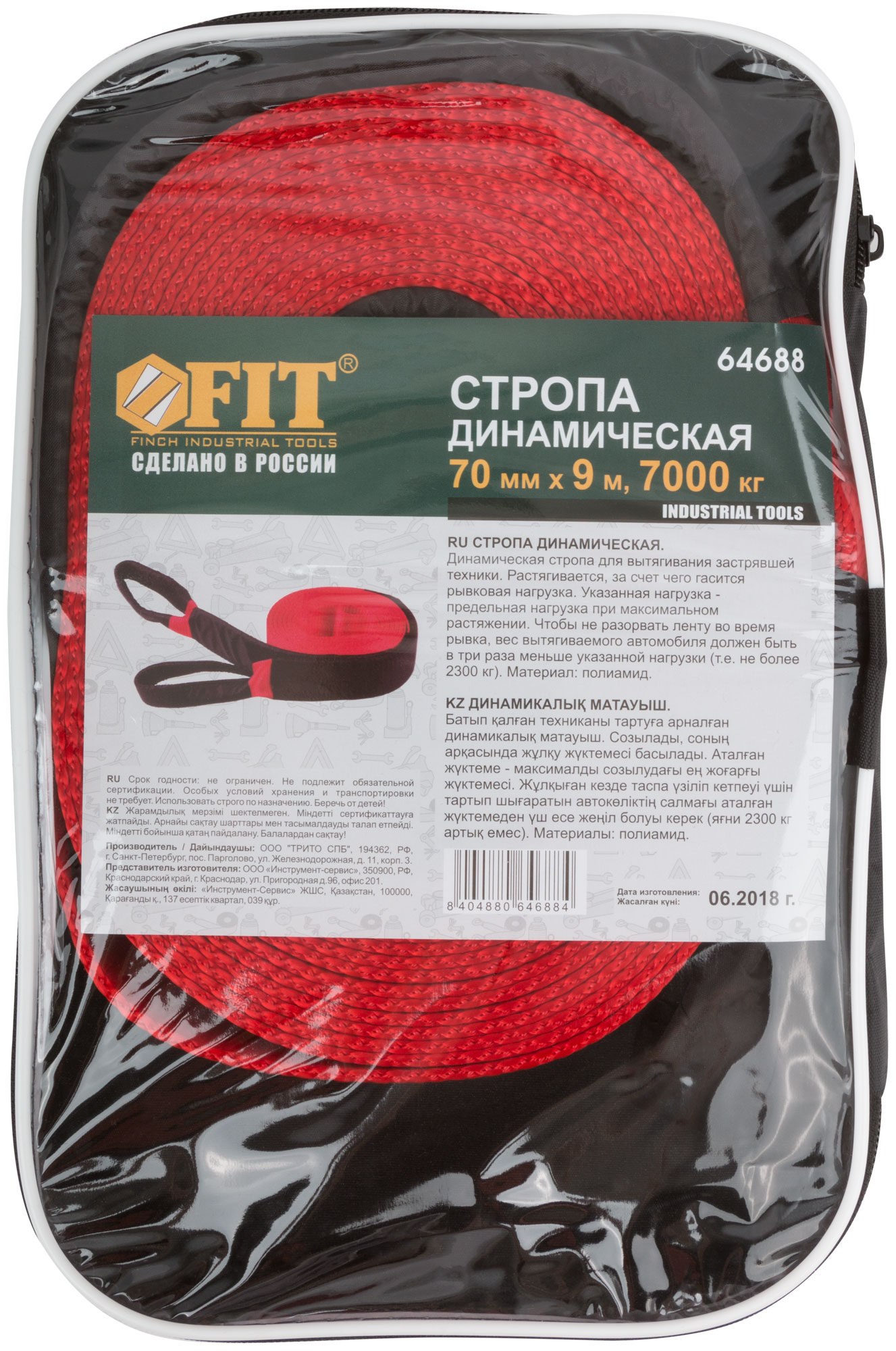 Динамическая стропа для вытягивания застрявшей техники. Растягивается , за счет чего гасится рывковая нагрузка. Вес вытягиваемого автомобиля не должен превышать заявленную на стропе нагрузку поделенную на три. Материал: полиамид. Упаковка: термоусадочная пленка.