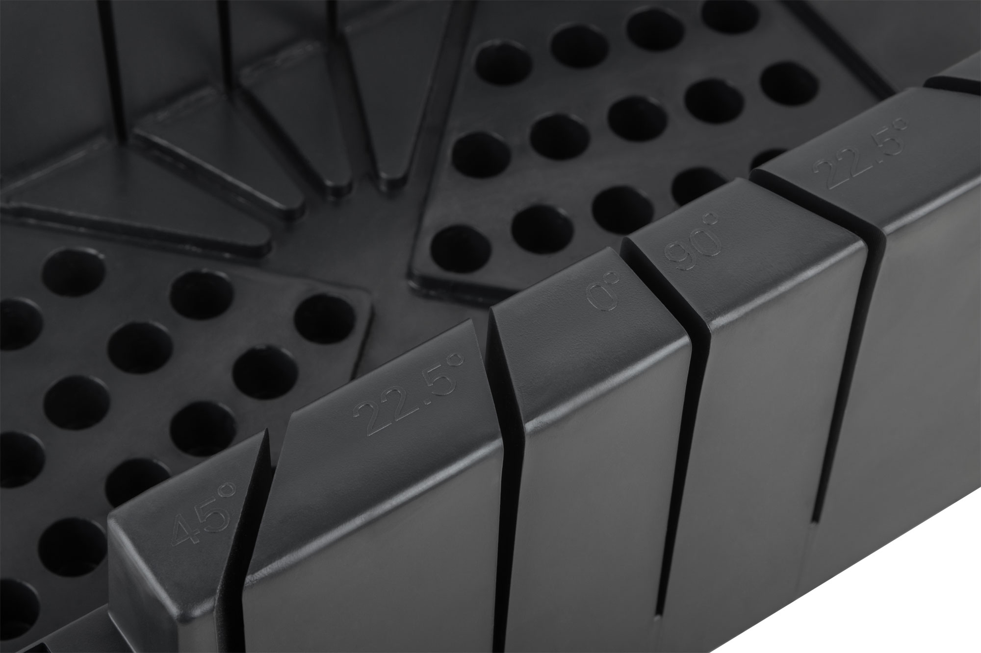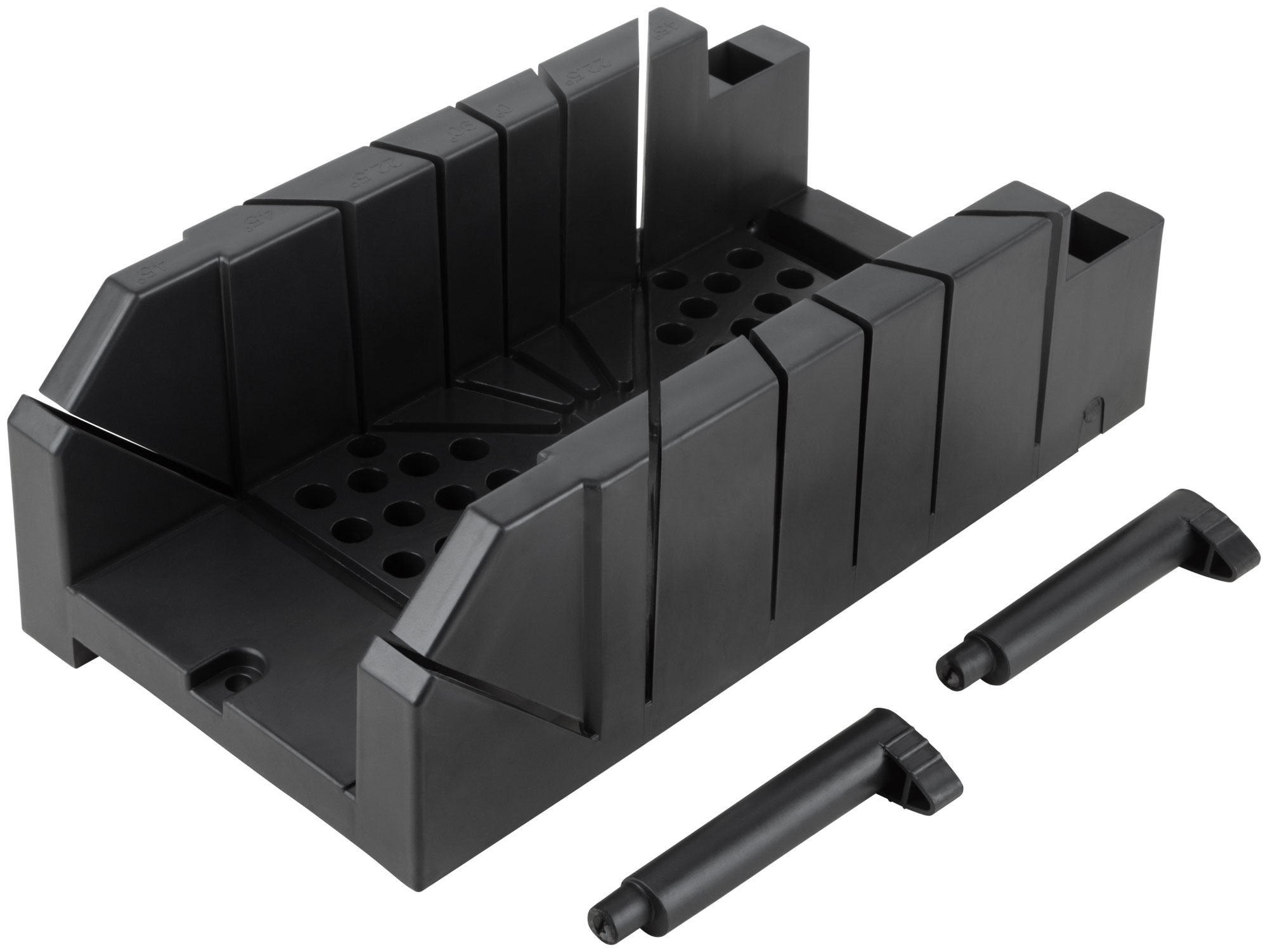 Профи. С двумя эксцентриками для крепления деталей. Для распиловки под углом 22,5°/45°/90°/135° деталей шириной до 120 мм. Материал: пластик.