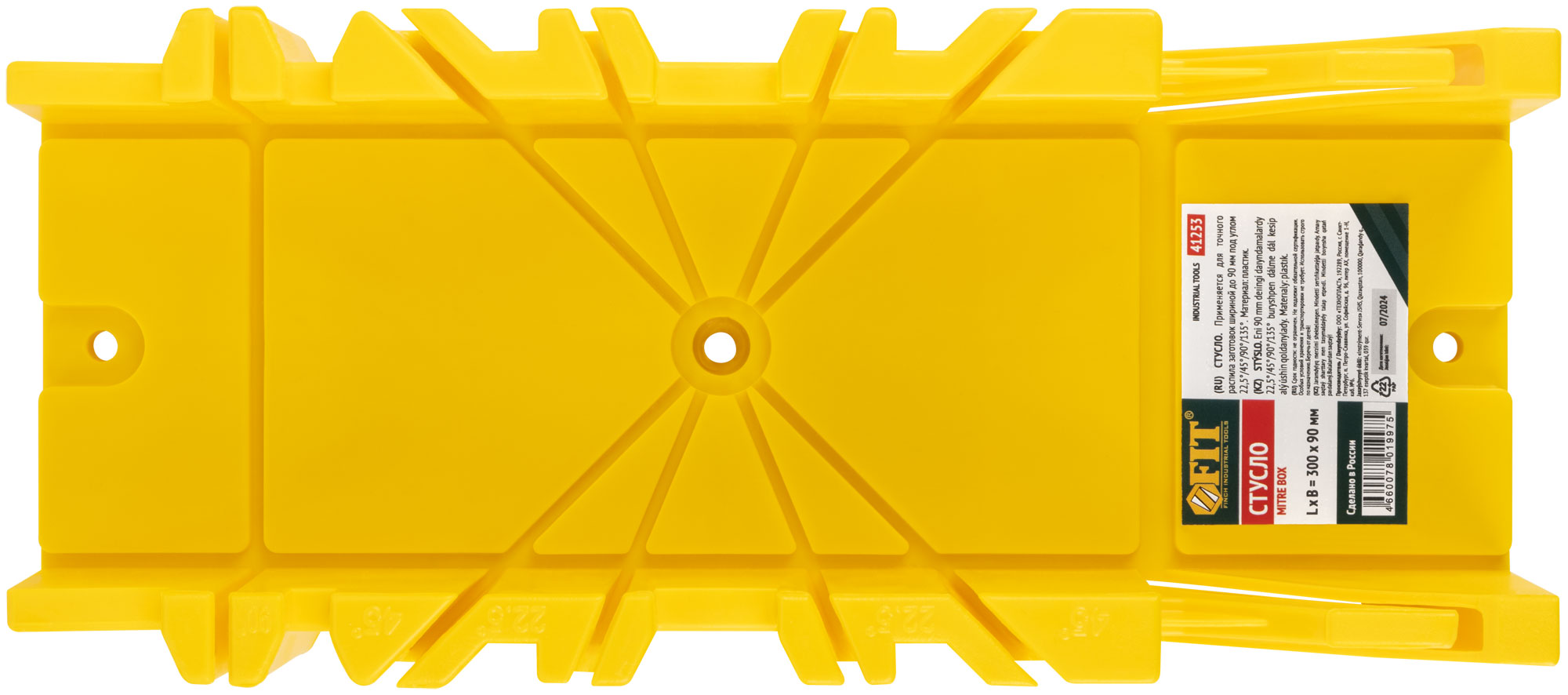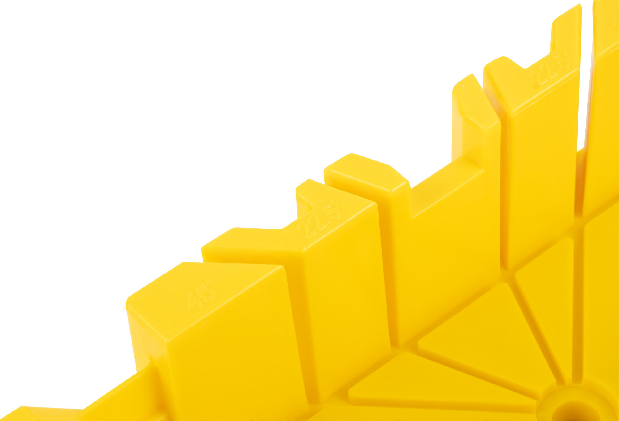 Для распиловки под углом 22,5°/45°/90°/135° деталей шириной до 90 мм. Горизонтальный угол 45°. Материал: пластик.