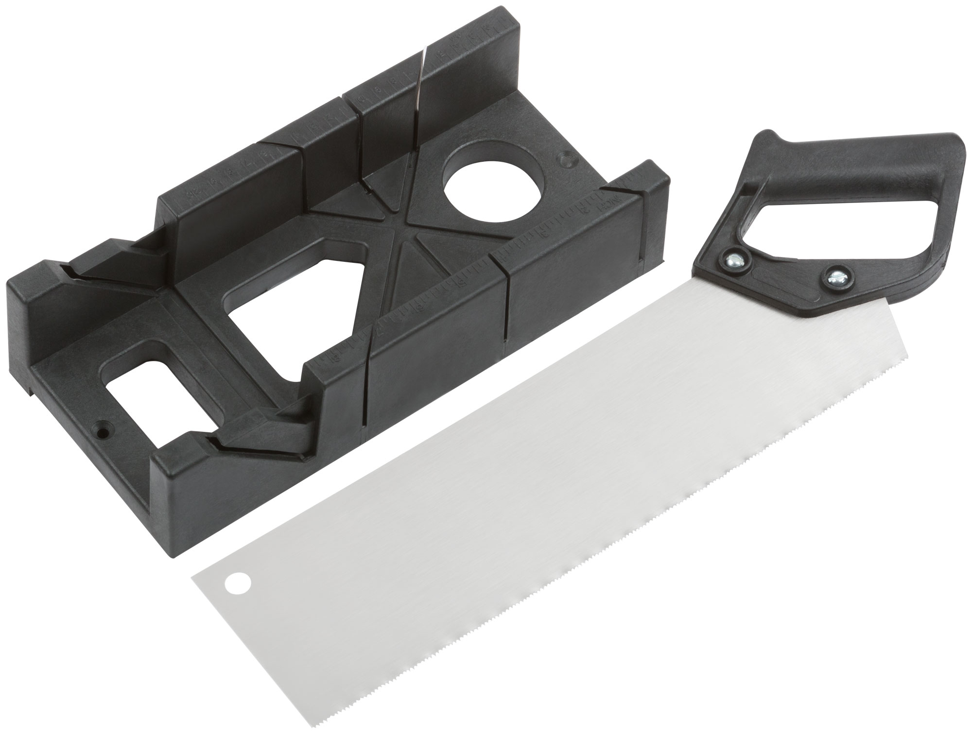 Для распиловки деталей шириной до 105 мм под углом. Вертикальные углы 45/90/135°, горизонтальный угол 45°. Зубья мелкие 13Т (шаг 2 мм ). Материал: инструментальная сталь, пластик.