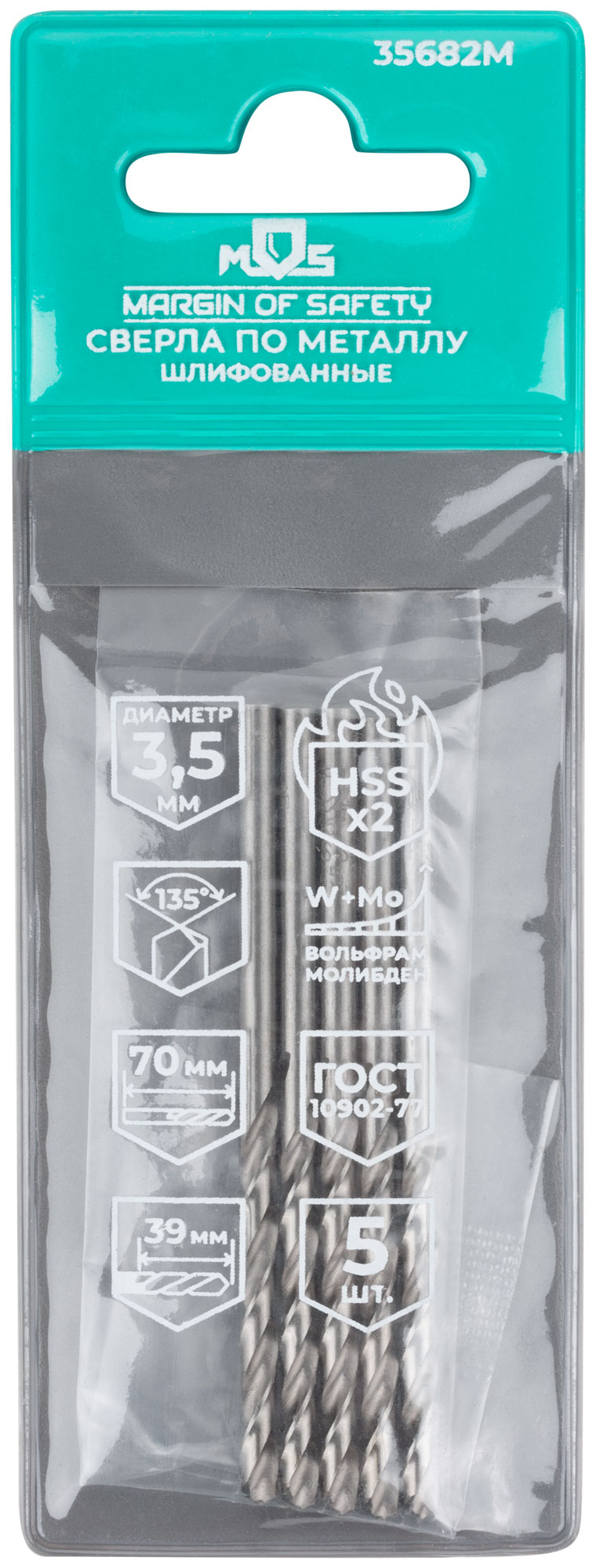 Сверла по металлу HSS шлифованные, угол заточки 135°, 3,5 x 70 мм (5 шт.)