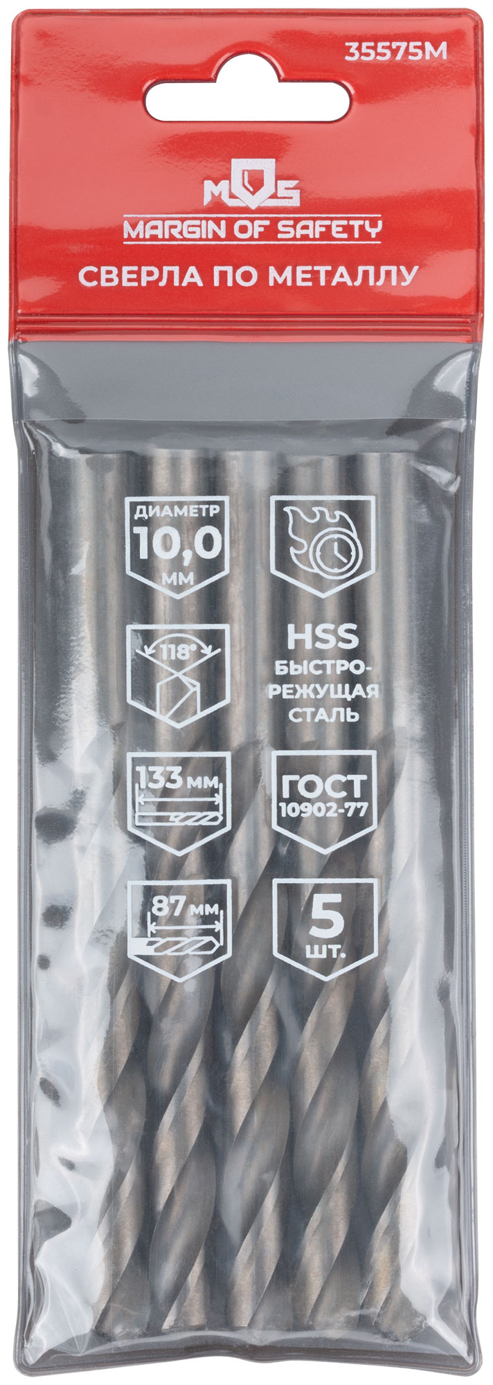 Сверла по металлу HSS, угол заточки 118°, 10,0 x 133 мм, (5 шт.)