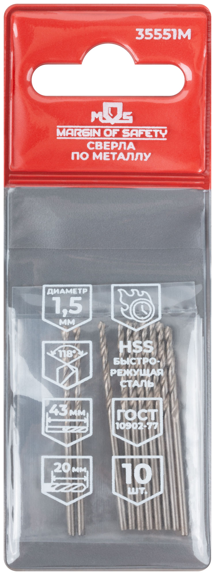 Сверла по металлу HSS, угол заточки 118°, 1,5 x 43 мм, (10 шт.)