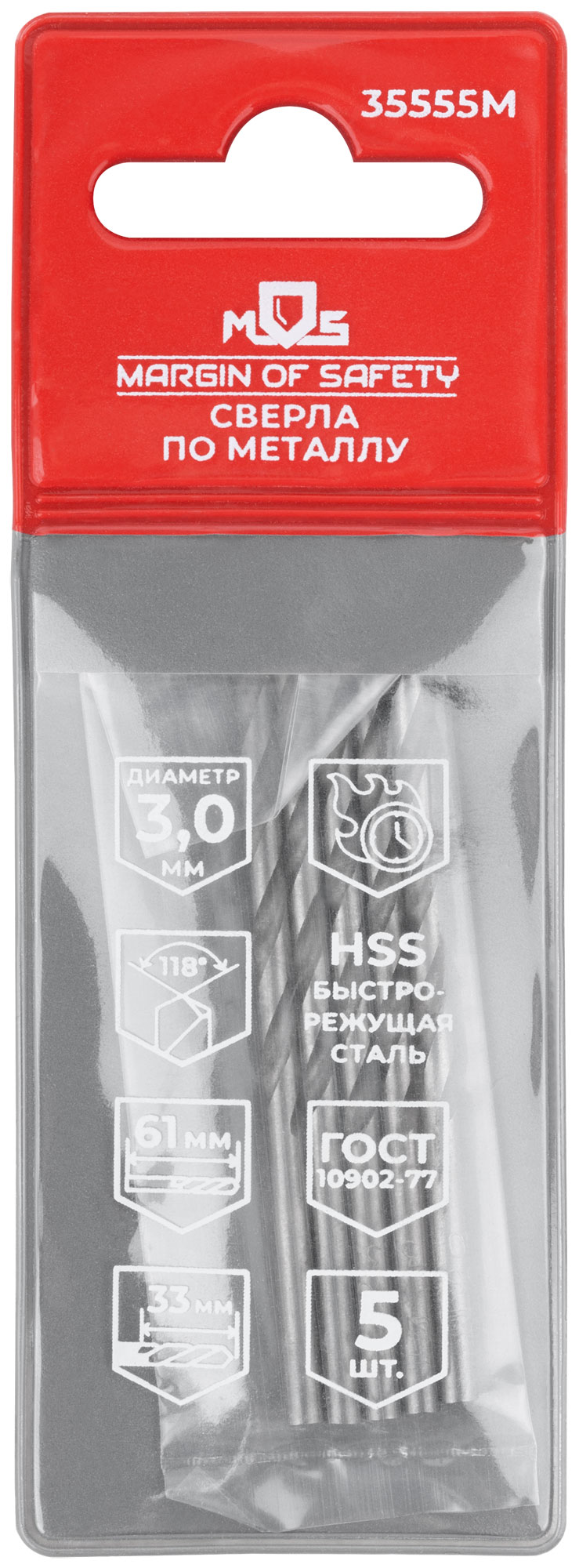 Сверла по металлу HSS, угол заточки 118°, 3,0 x 61 мм, (5 шт.)