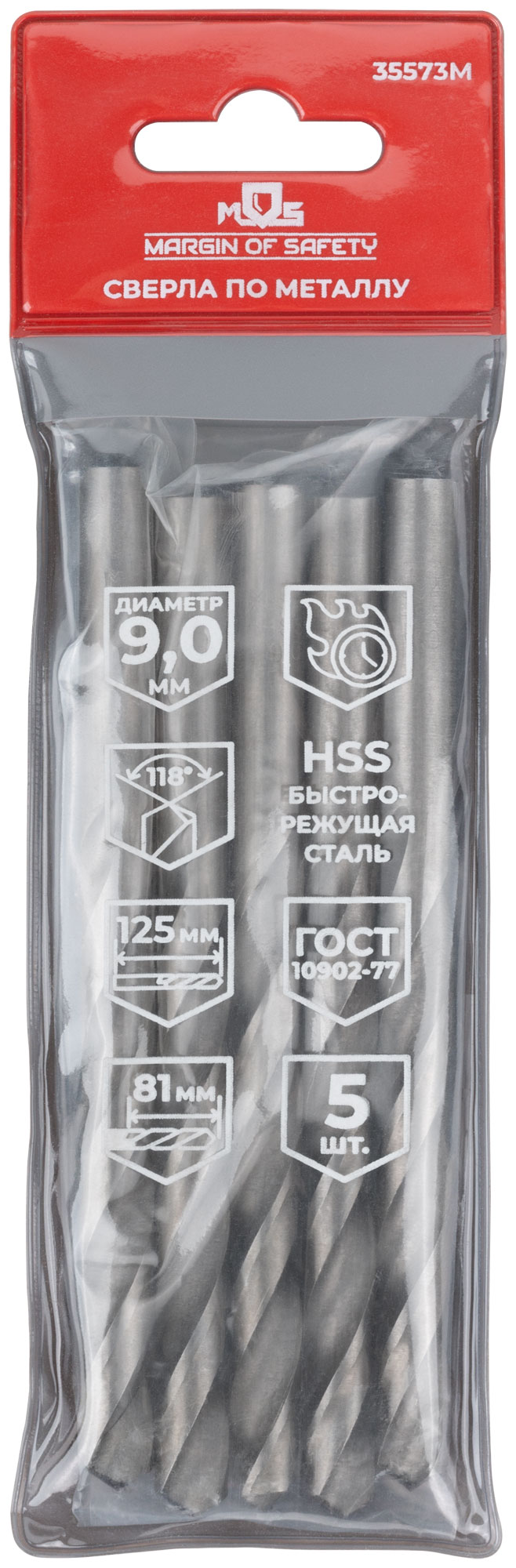 Сверла по металлу HSS, угол заточки 118°, 9,0 x 125 мм, (5 шт.)