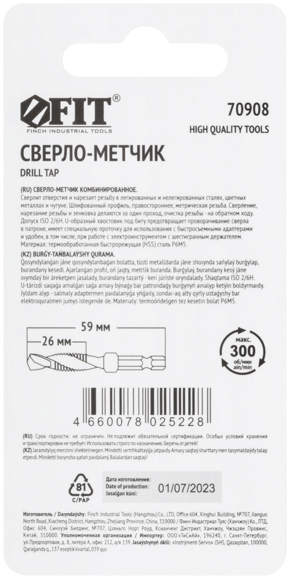 Для сверления отверстий и нарезания резьбы в легированных и нелигированных сталях, цветных металлах и чугуне. Шлифованный профиль, правостороннее, метрическая резьба. Шестигранный U-образный хвостик. Материал: быстрорежущая (HSS) сталь P6M5. Упаковка : блистер.