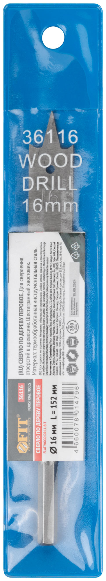Перовое, L=152 мм, шестигранный хвостовик. Материал: инструментальная сталь. Упаковка: п/э пакет.